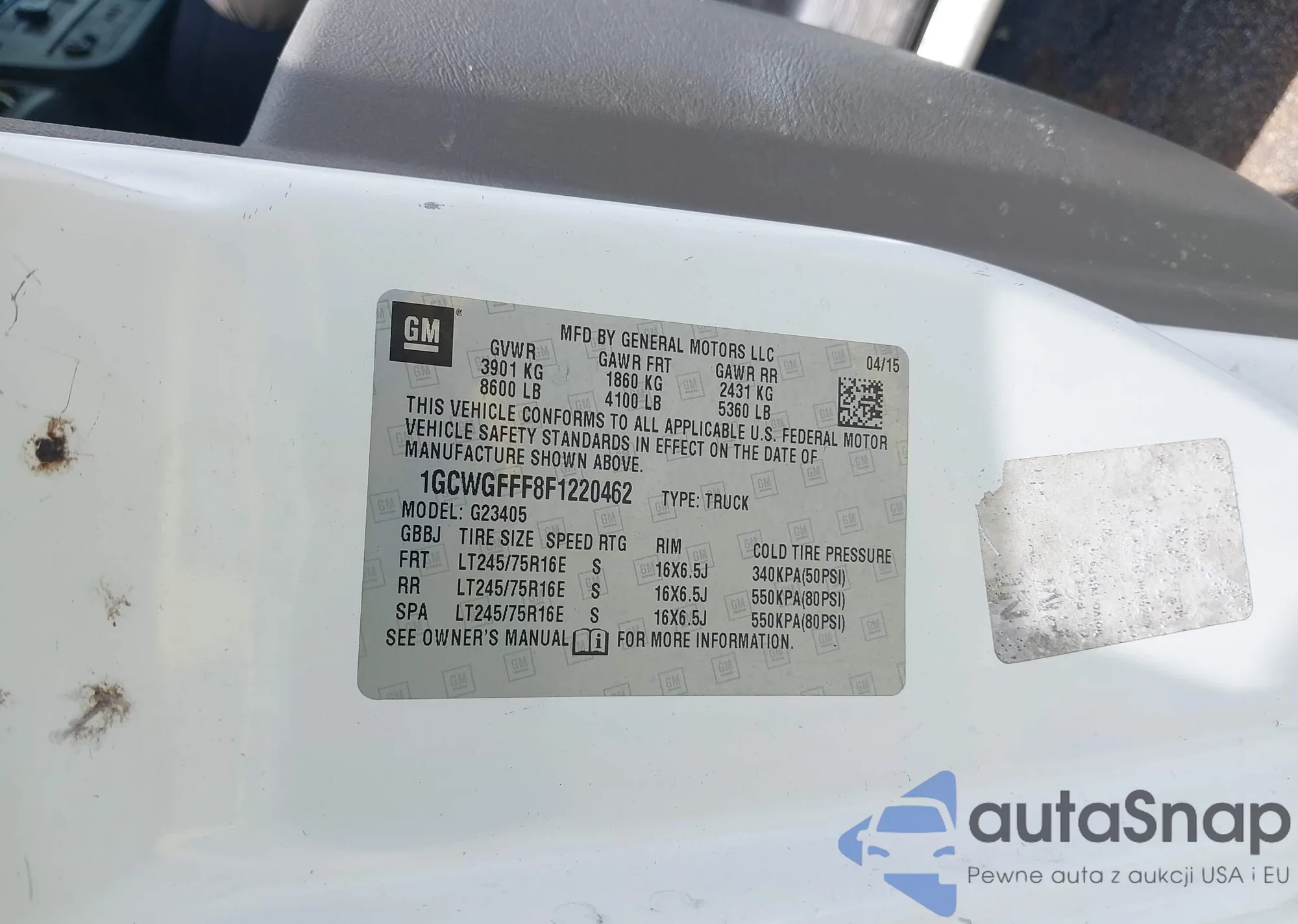 LOT: 42142545 VIN: 1GCWGFFF8F1220462