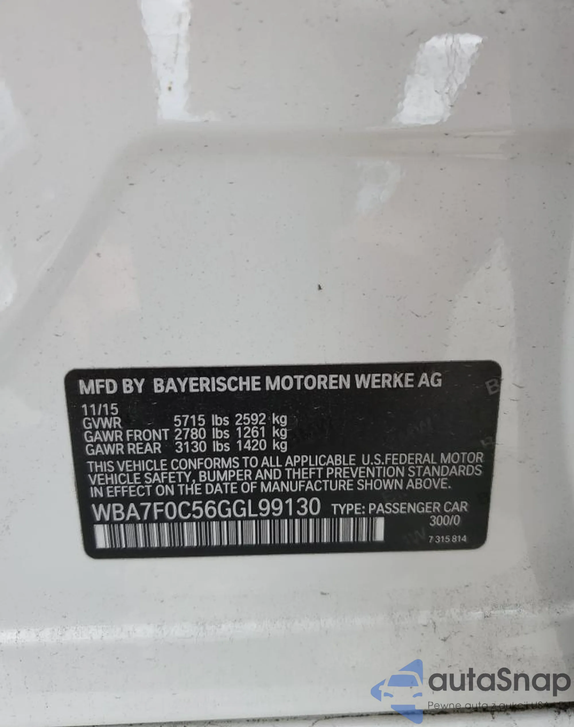 • VIN WBA7F0C56GGL99130