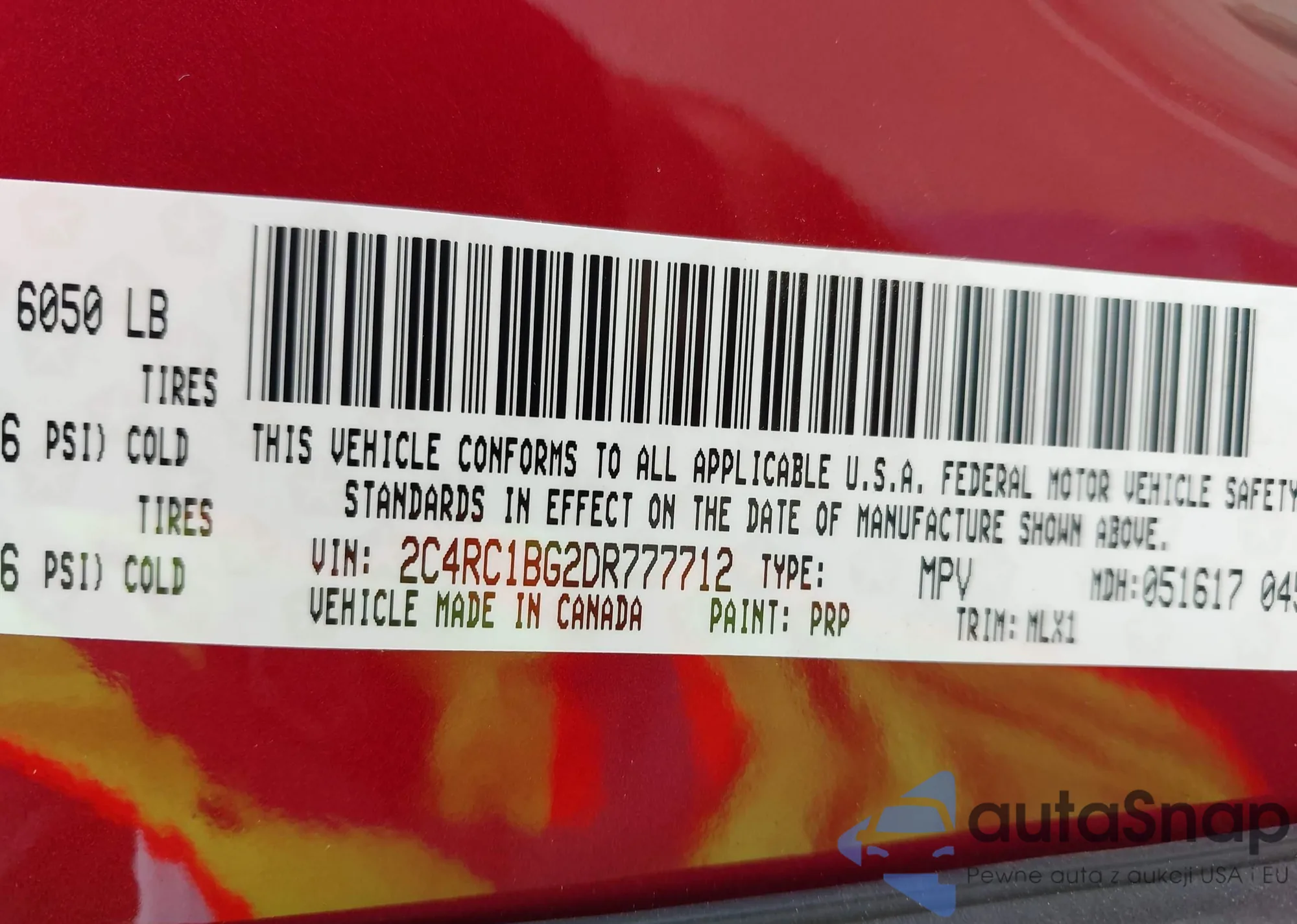 • VIN 2C4RC1BG2DR777712