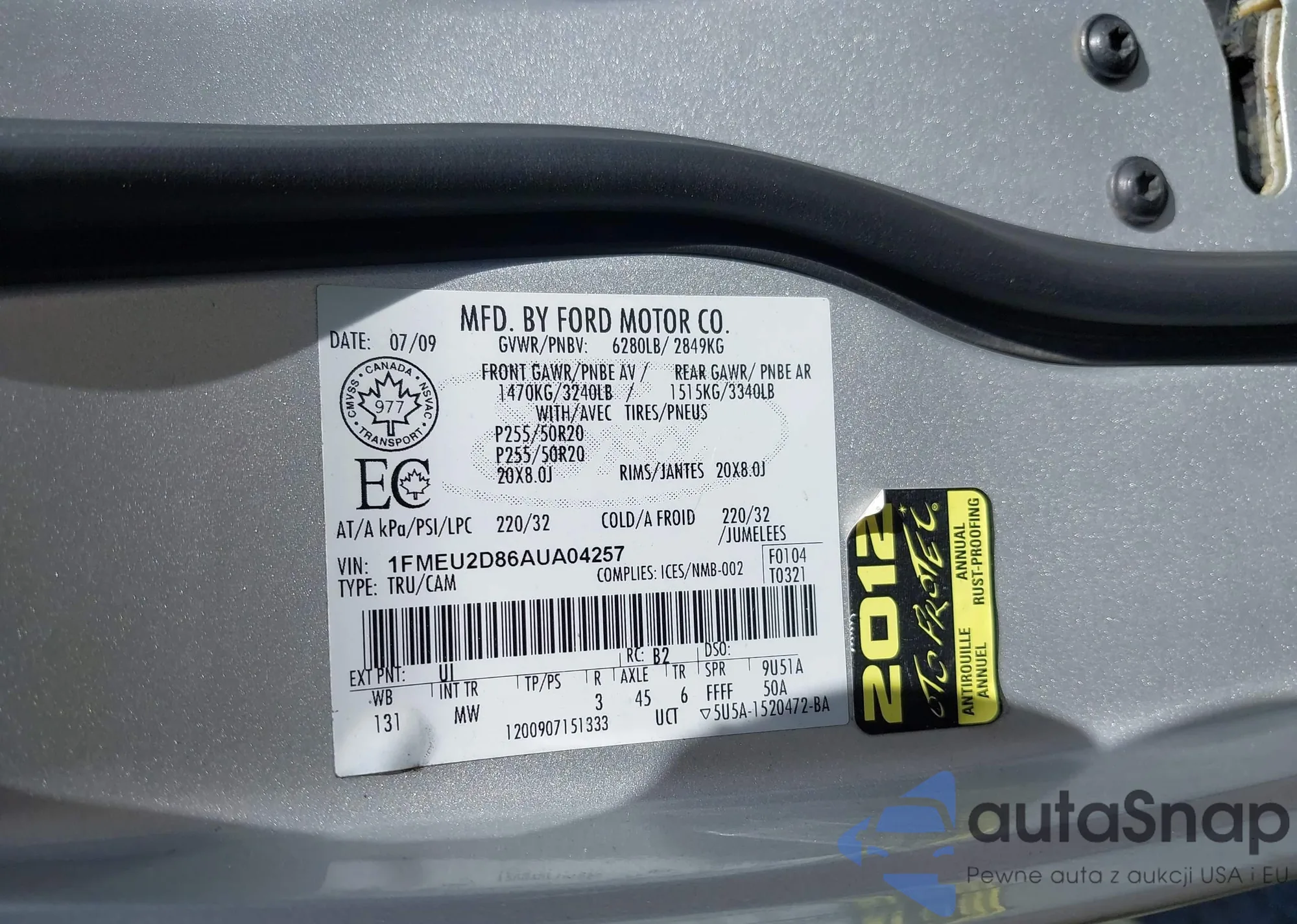 • VIN 1FMEU2D86AUA04257
