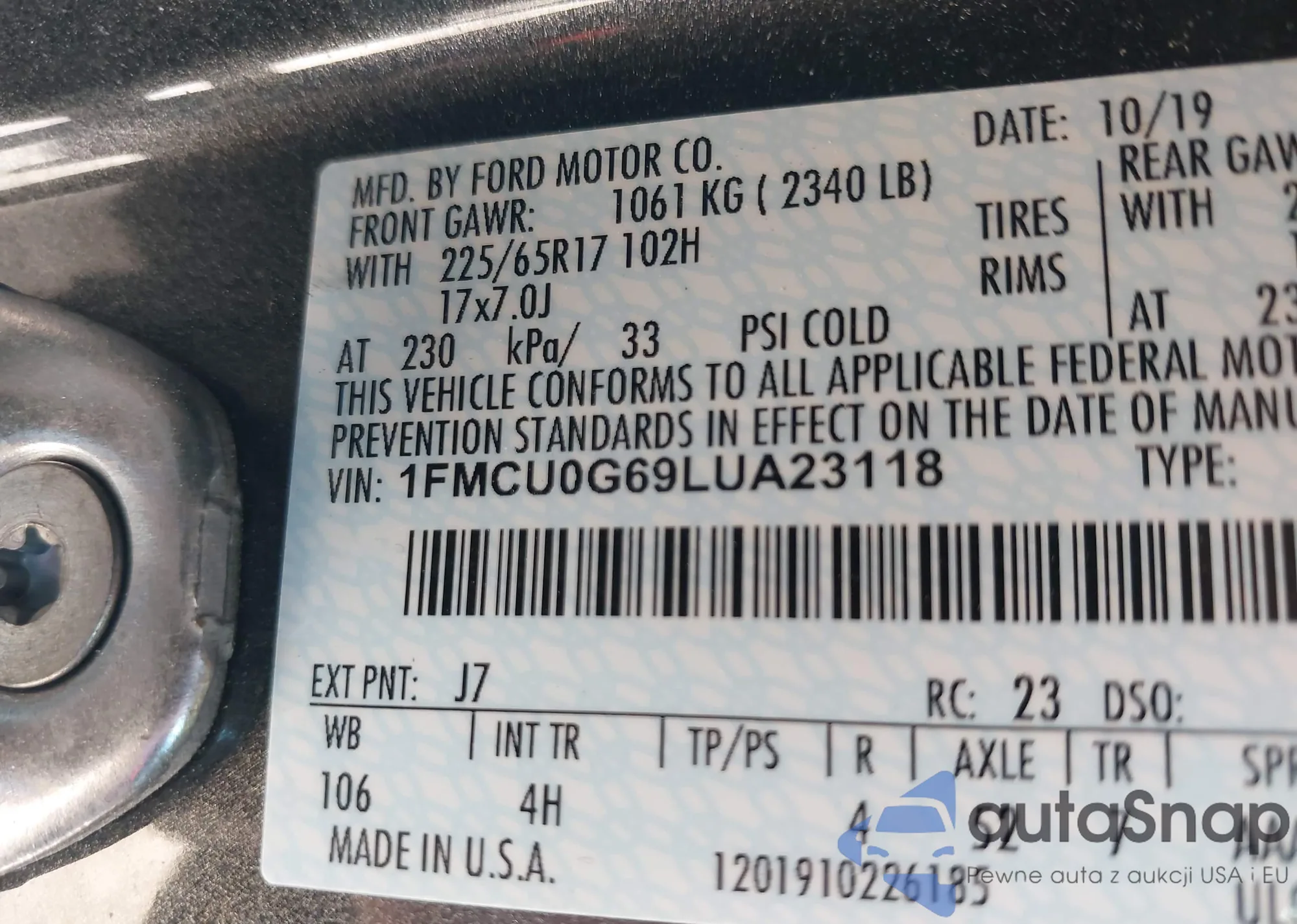 LOT: 42196733 VIN: 1FMCU9G96DUA34397