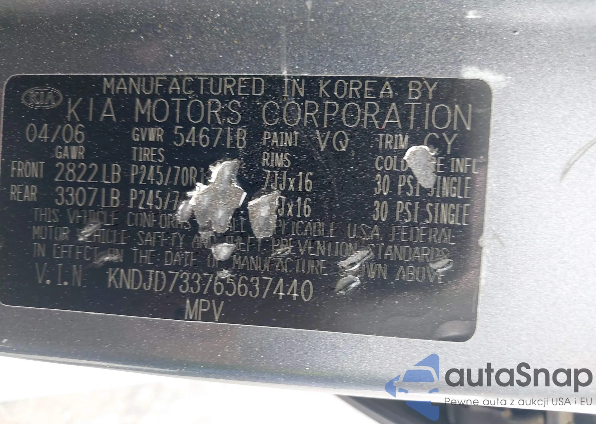 LOT: 42207492 VIN: KNADM4A36D6148689