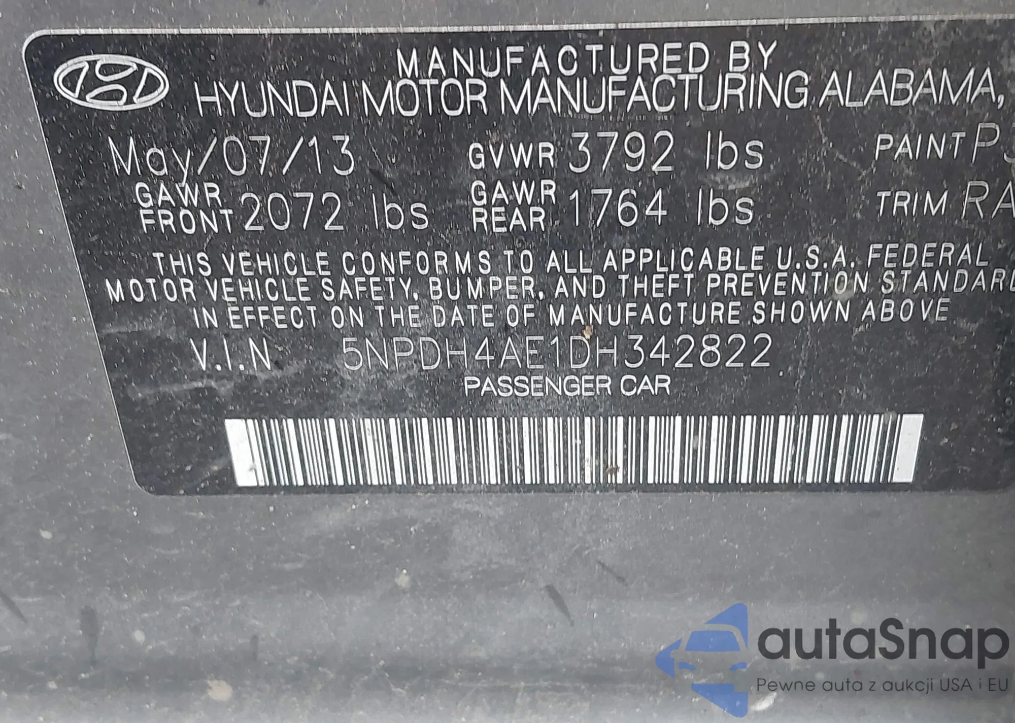 LOT: 42207797 VIN: 5NPDH4AE1DH342822