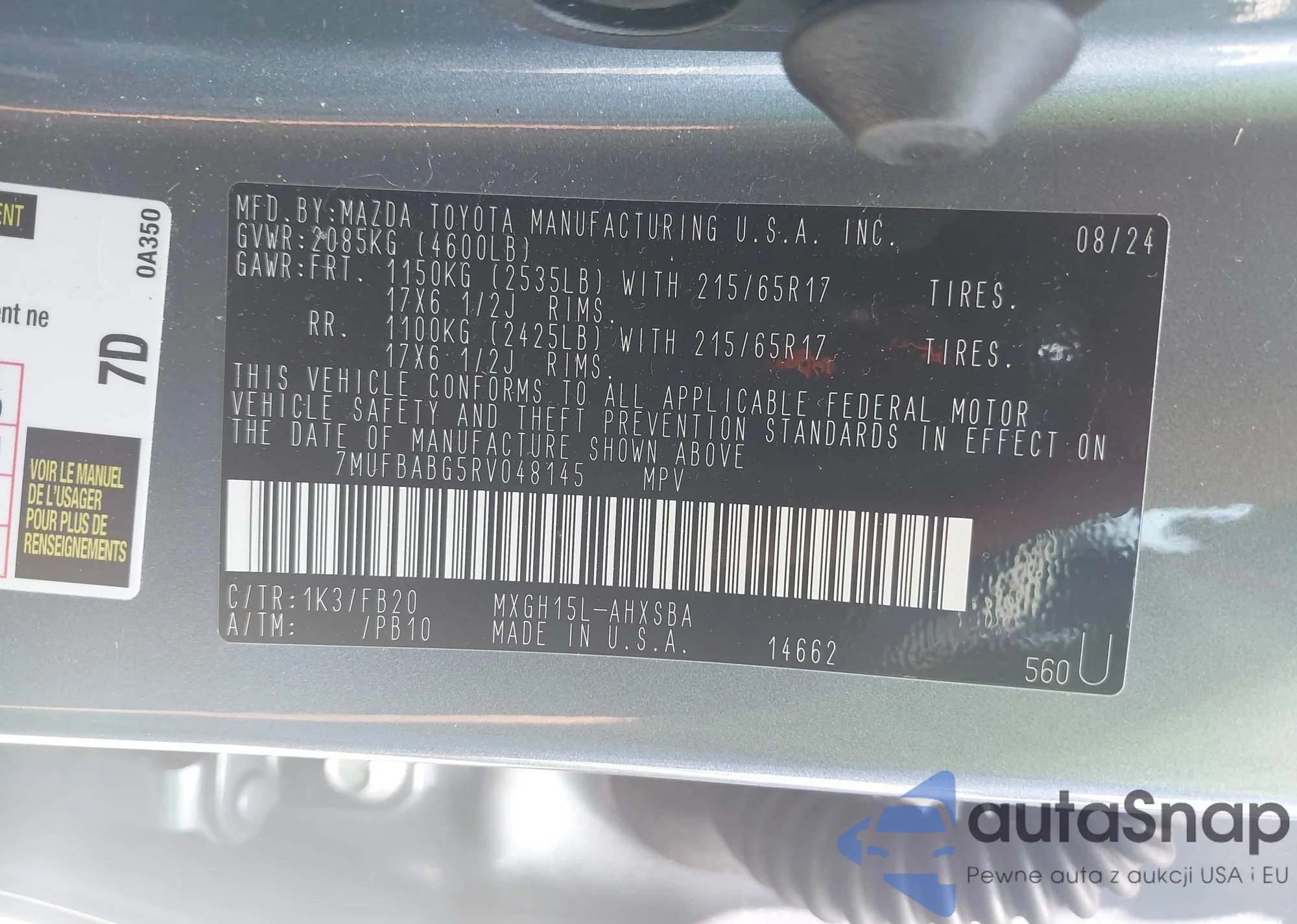 • VIN 7MUBAAAG9RV104784