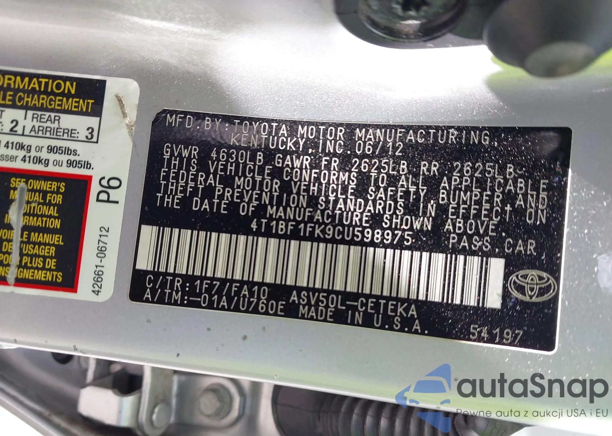 • VIN 4T1BF1FK0EU870638