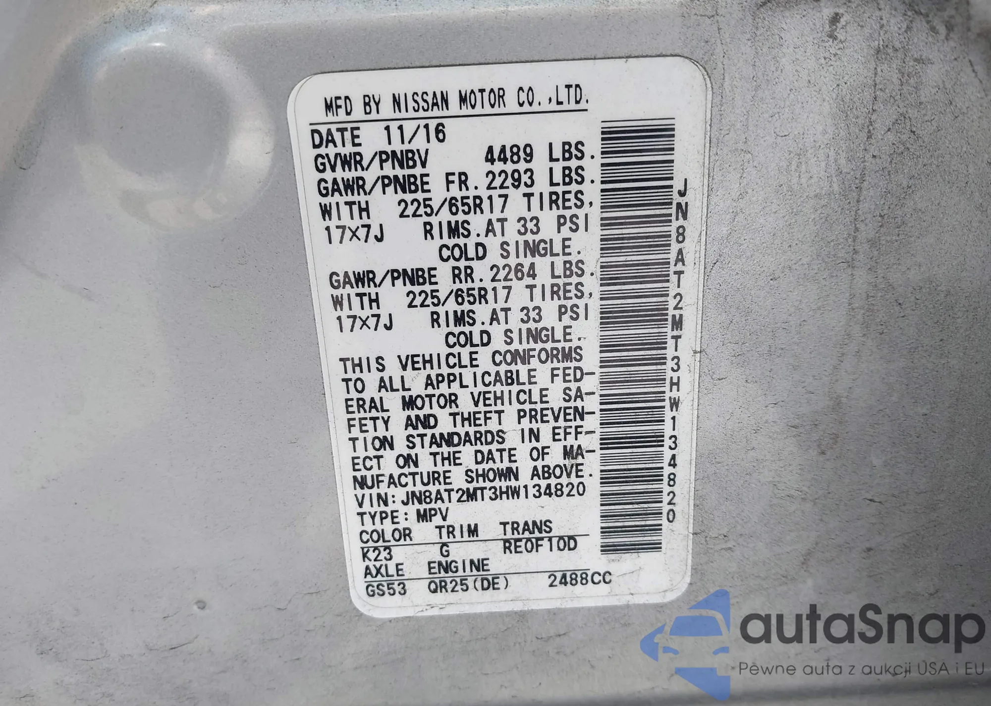LOT: 42136722 VIN: KNADM4A36E6349087