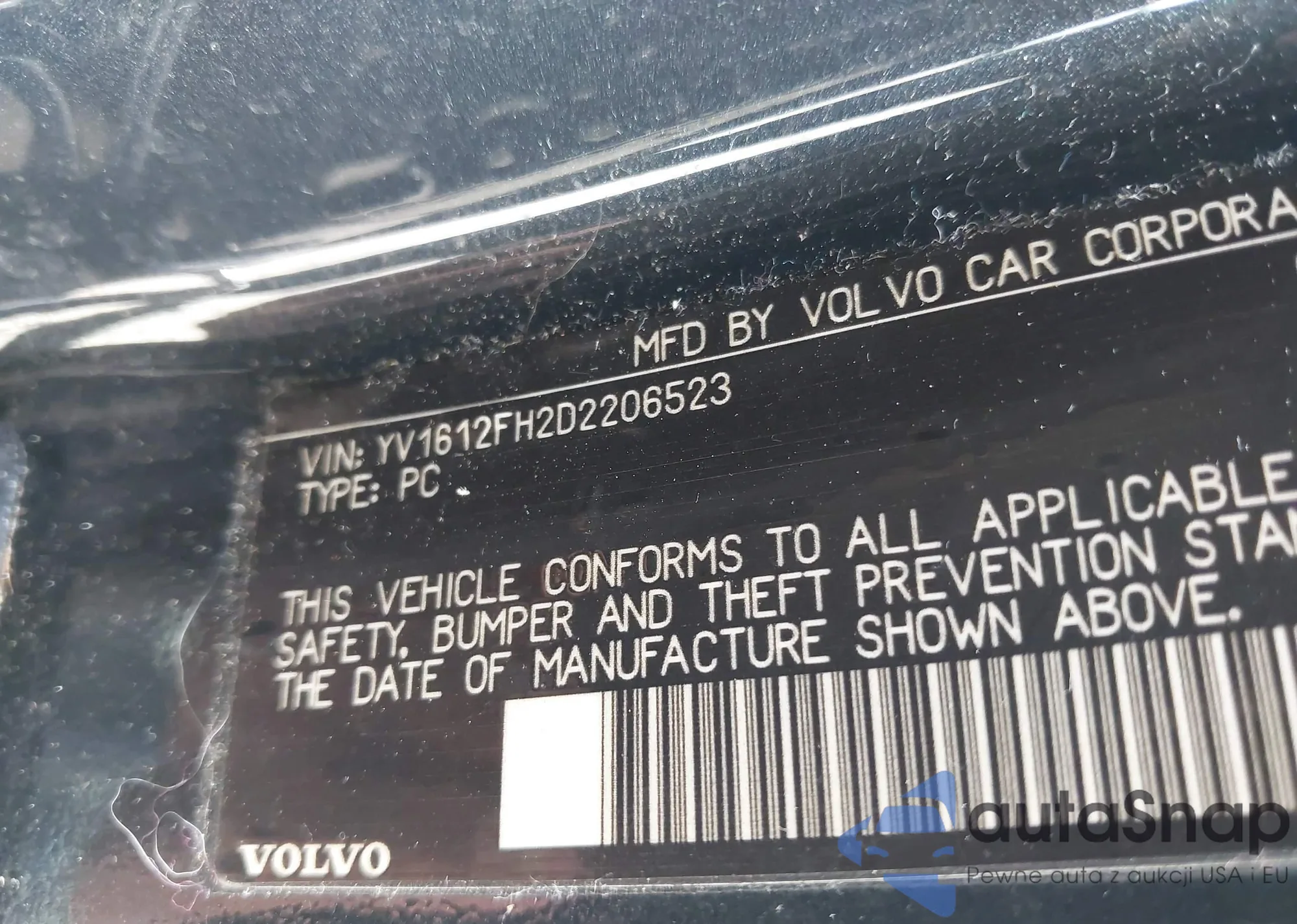 LOT: 42319576 VIN: YV1612FH2D2206523