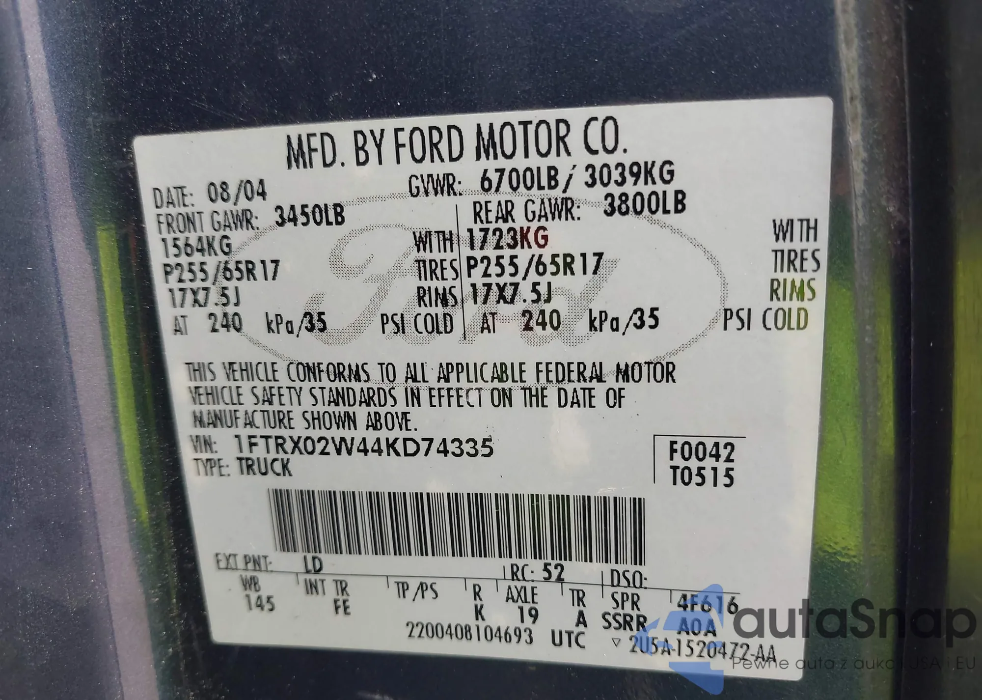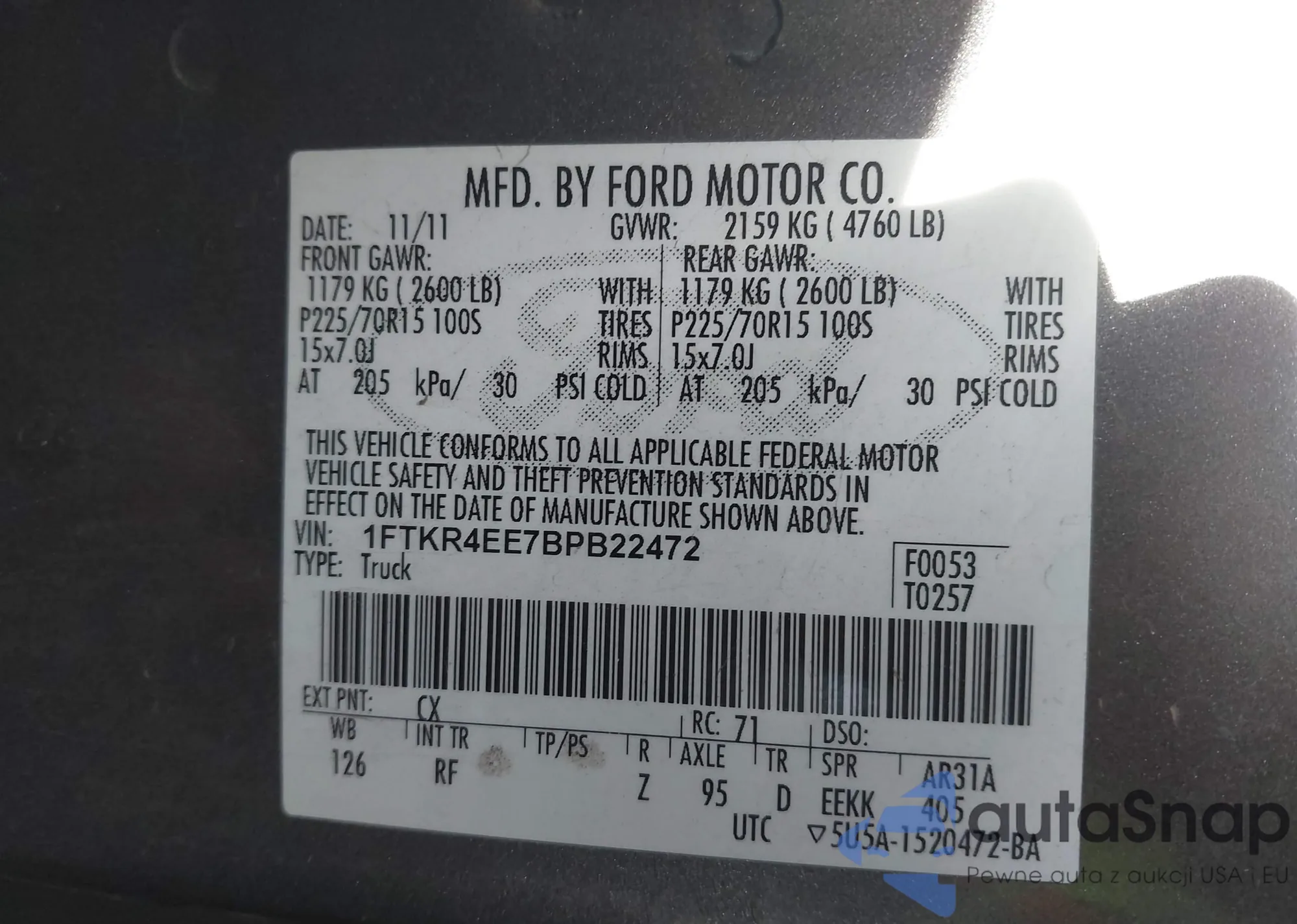 • VIN 1FTKR4EE7BPB22472