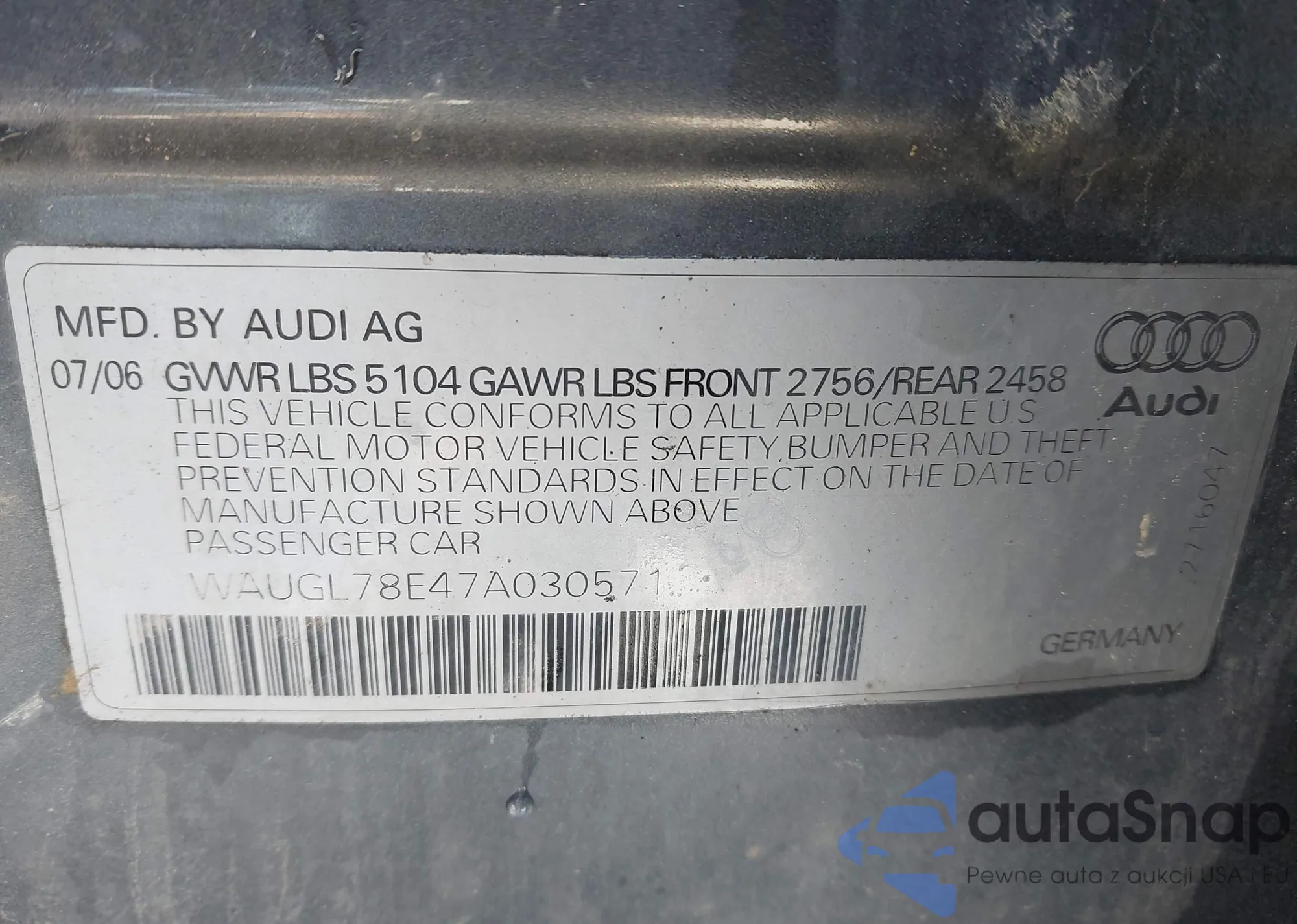 • VIN WAUGL78E47A030571