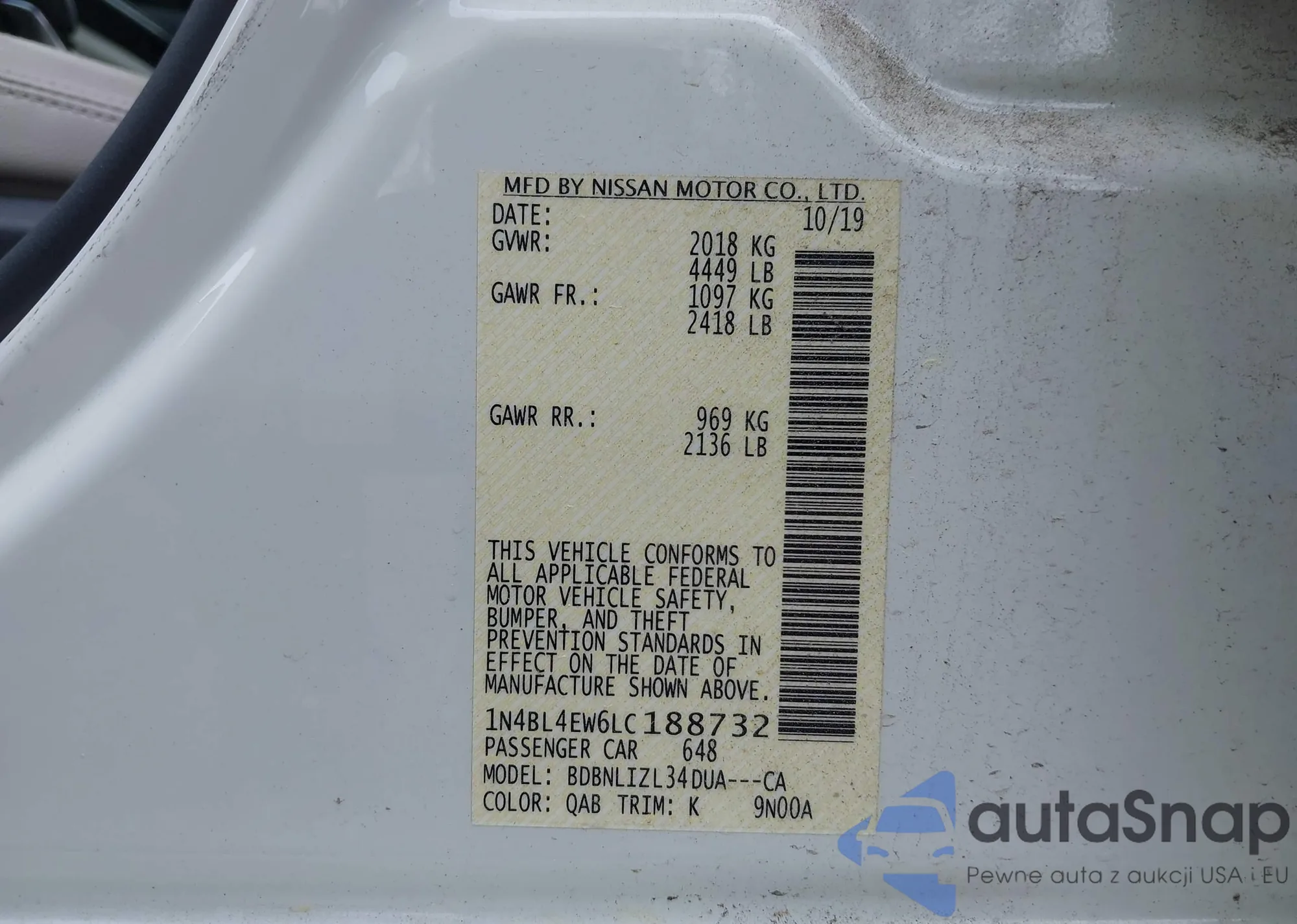 LOT: 42128091 VIN: JN8AY2NE8H9707601