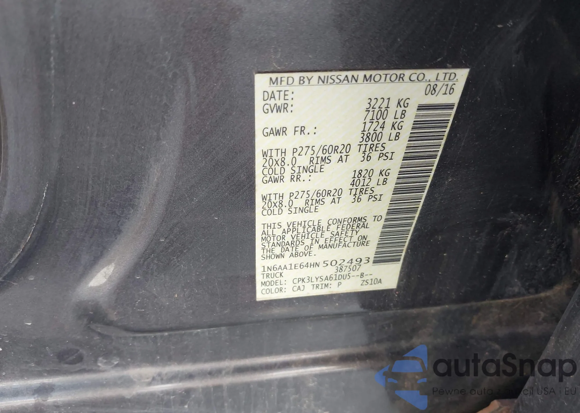 • VIN 1N6AA1E64HN502493