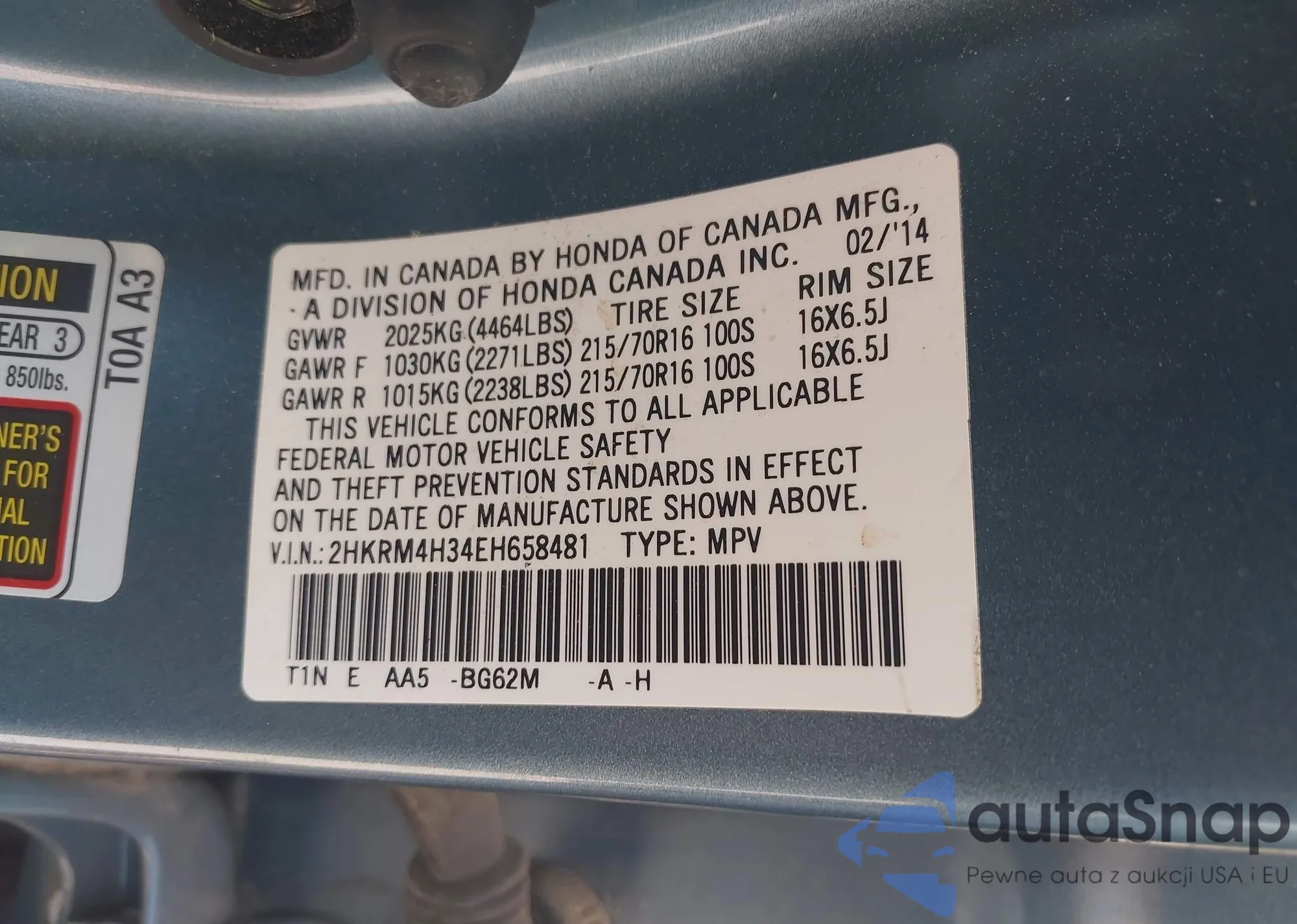 • VIN 2HKRM4H34EH658481