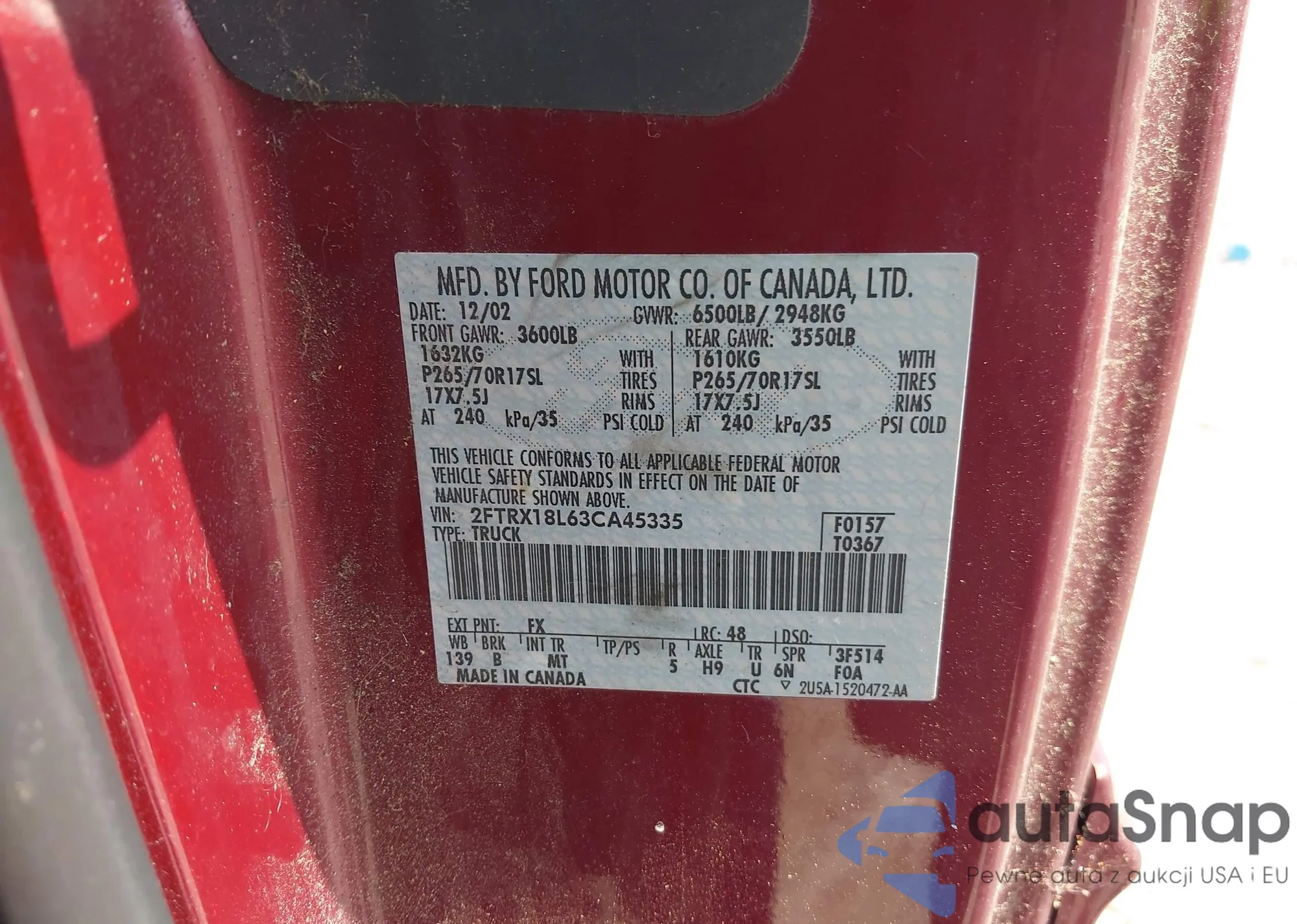 • VIN 2FTRX18L63CA45335