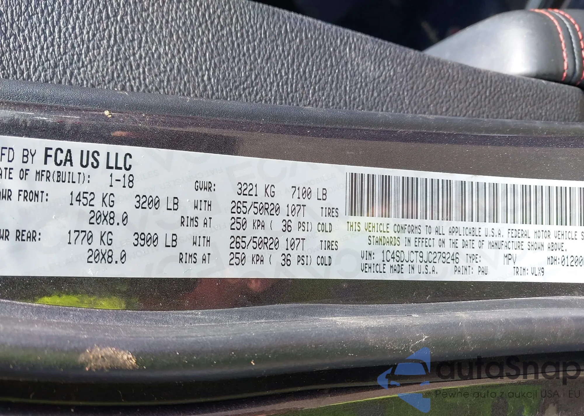 LOT: 42174466 VIN: JTDEAMDE7MJ020682