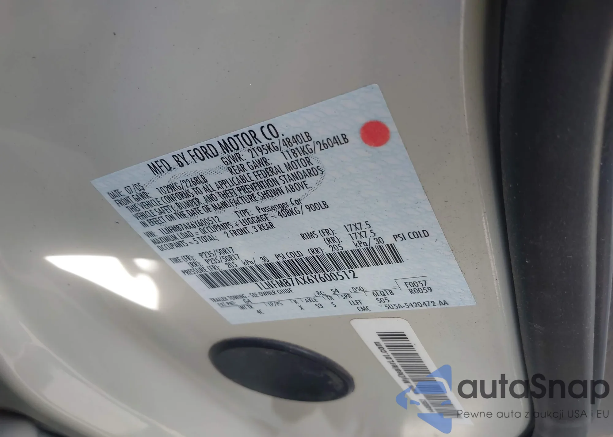 • VIN 1LNFM87AX6Y600512