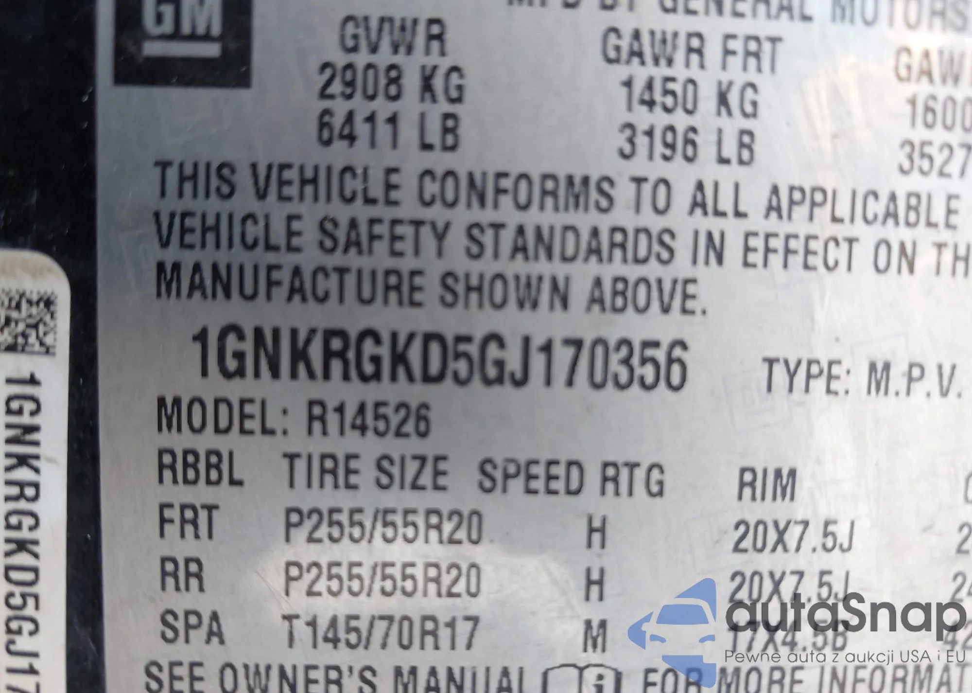 LOT: 42140603 VIN: 1GNKRGKD5GJ170356
