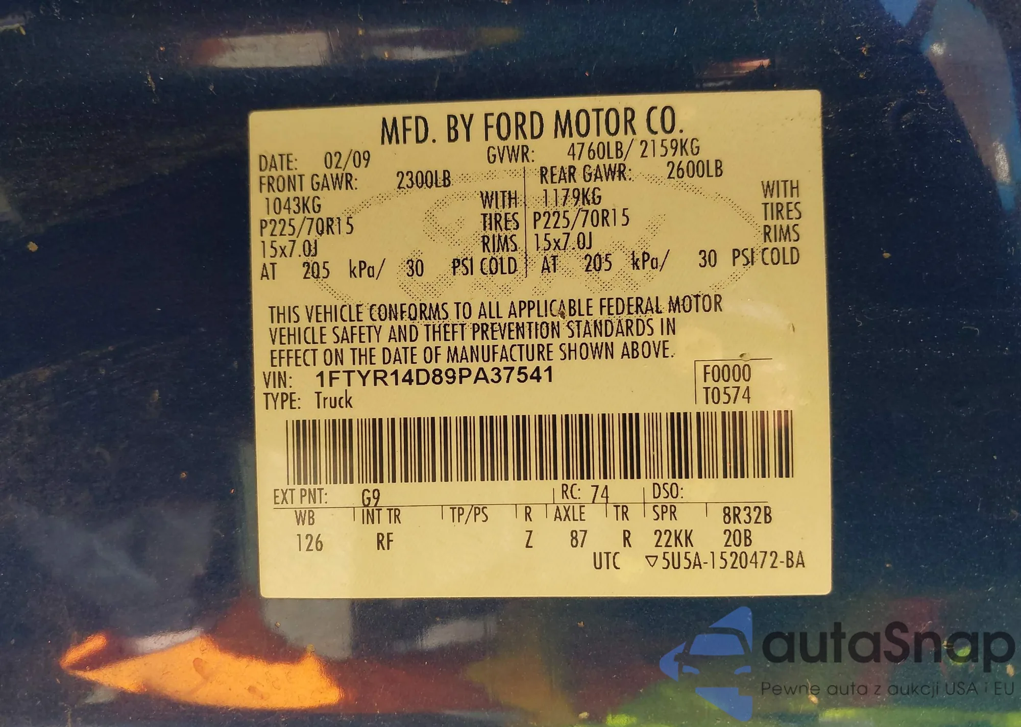 LOT: 42170479 VIN: 1FTYR14D89PA37541
