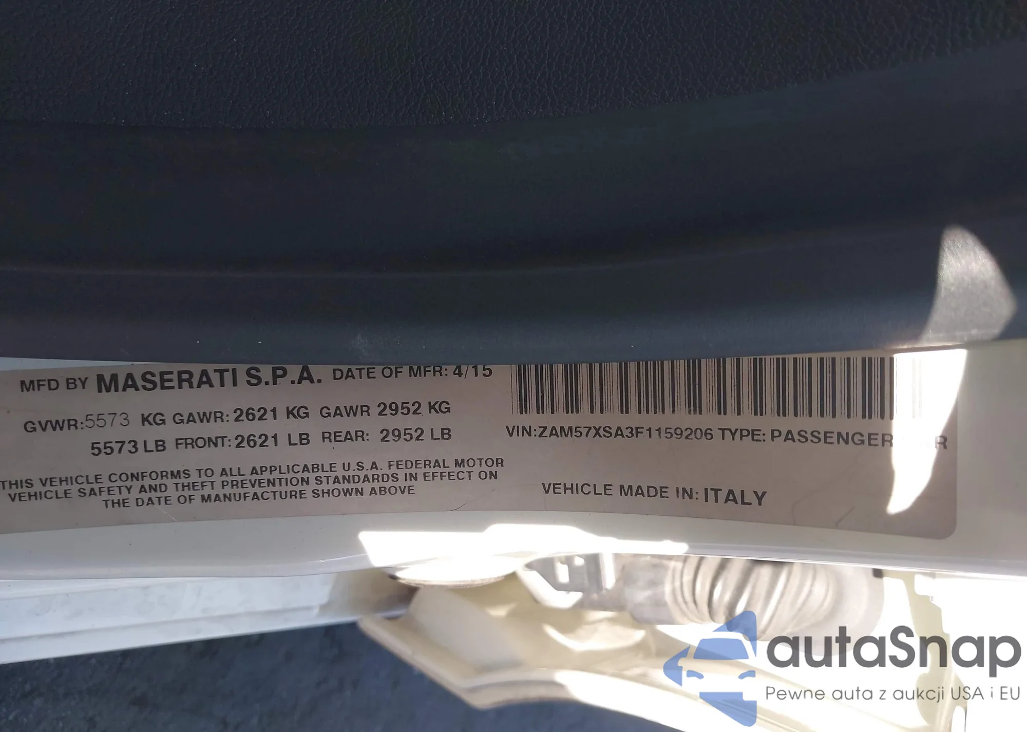 • VIN ZAM57XSA3F1159206
