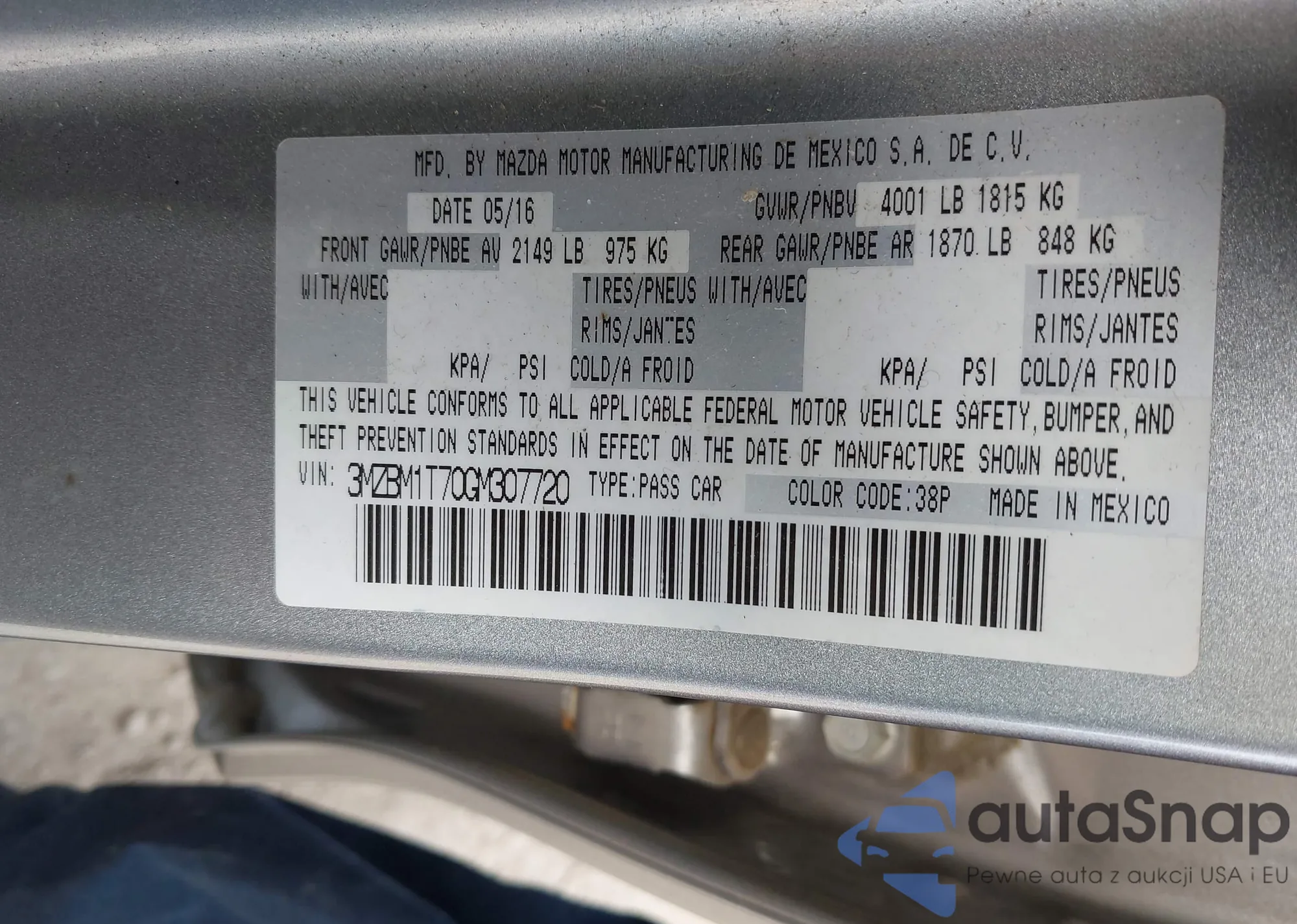 • VIN 3MZBM1T70GM307720