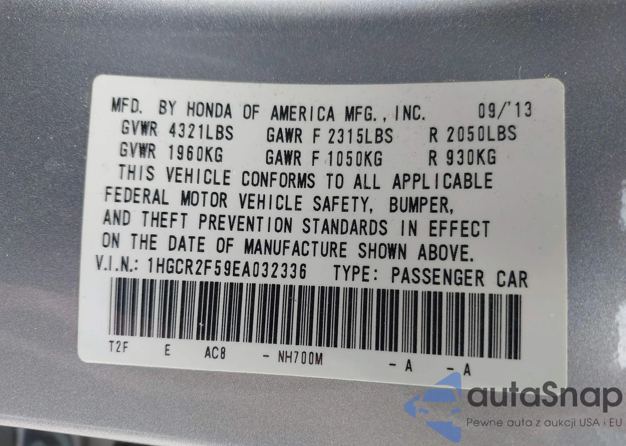 LOT: 42355836 VIN: 1HGCR2F59EA032336