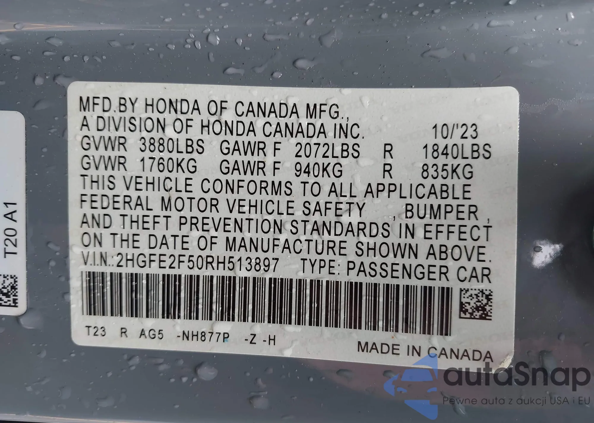 • VIN 2HGFE2F50RH513897
