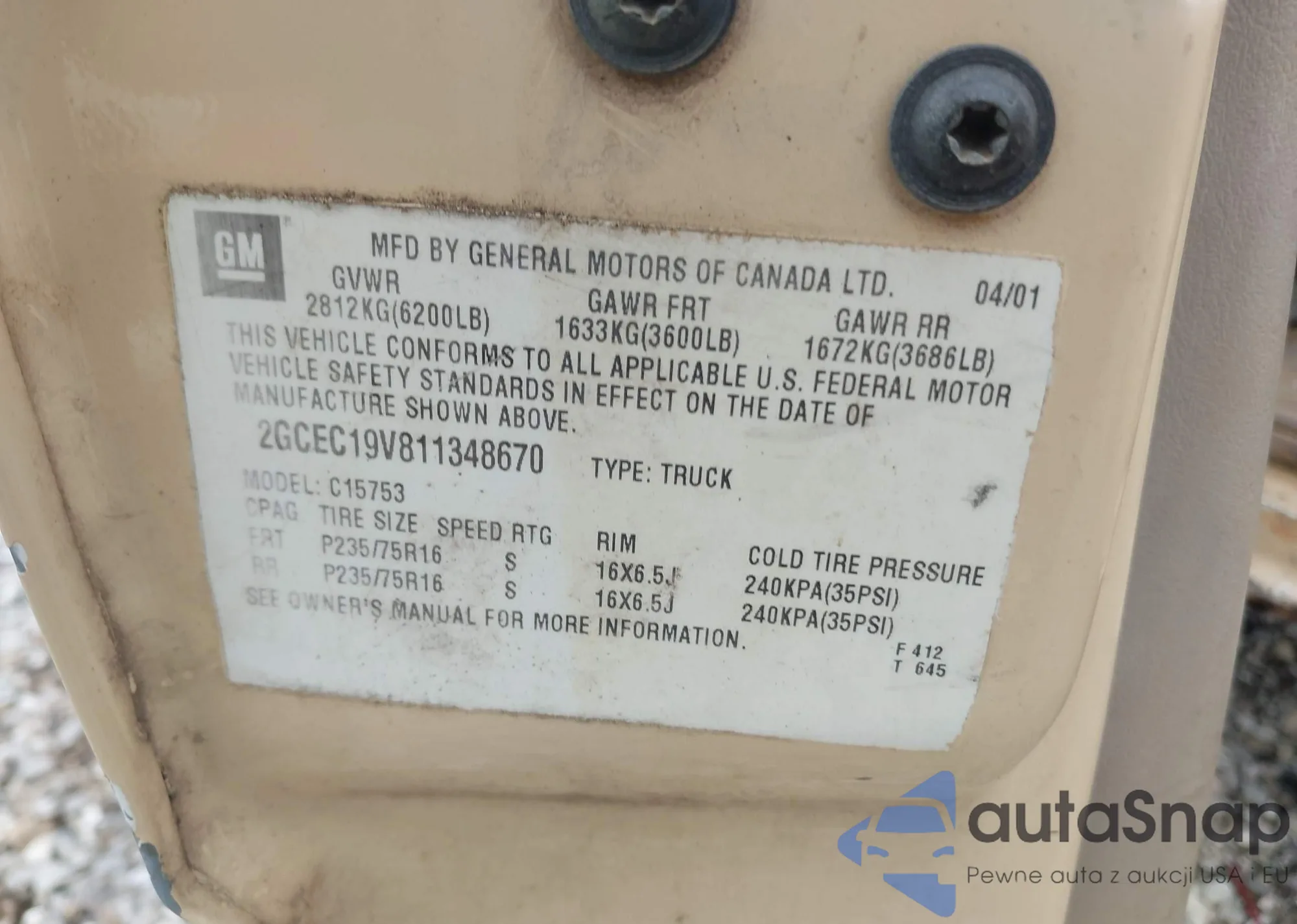 • VIN 2GCEC19V811348670