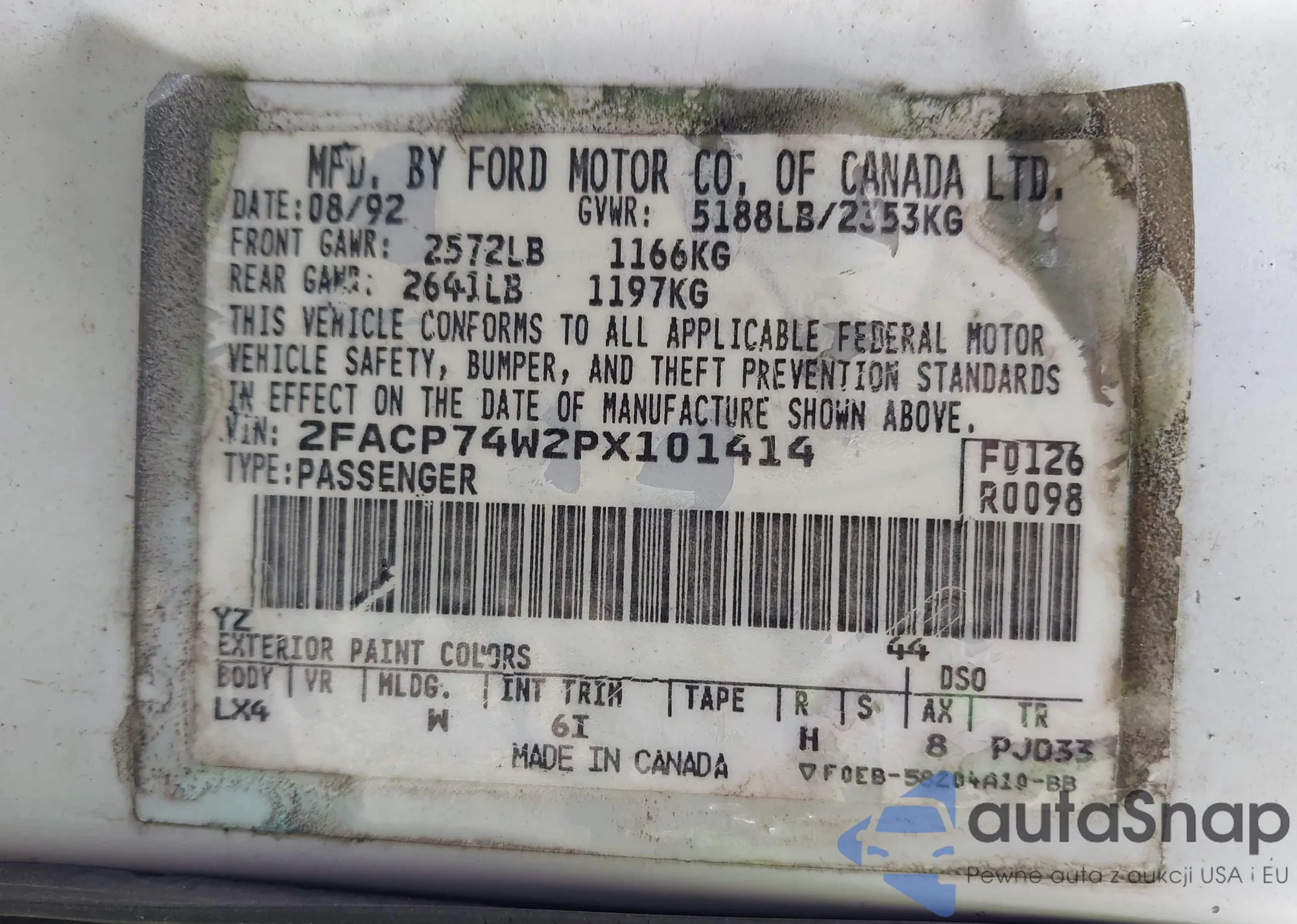 • VIN 2FACP74W2PX101414