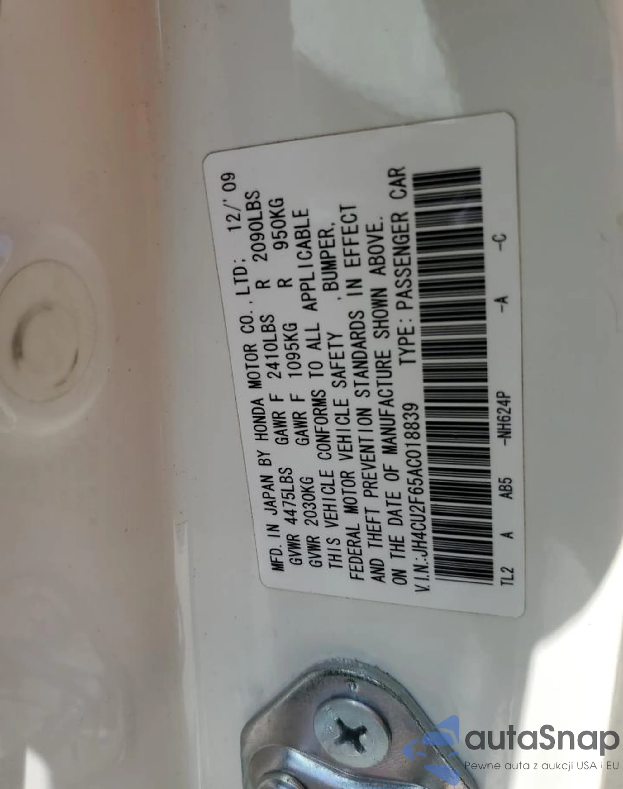 • VIN JH4CU2F65AC018839