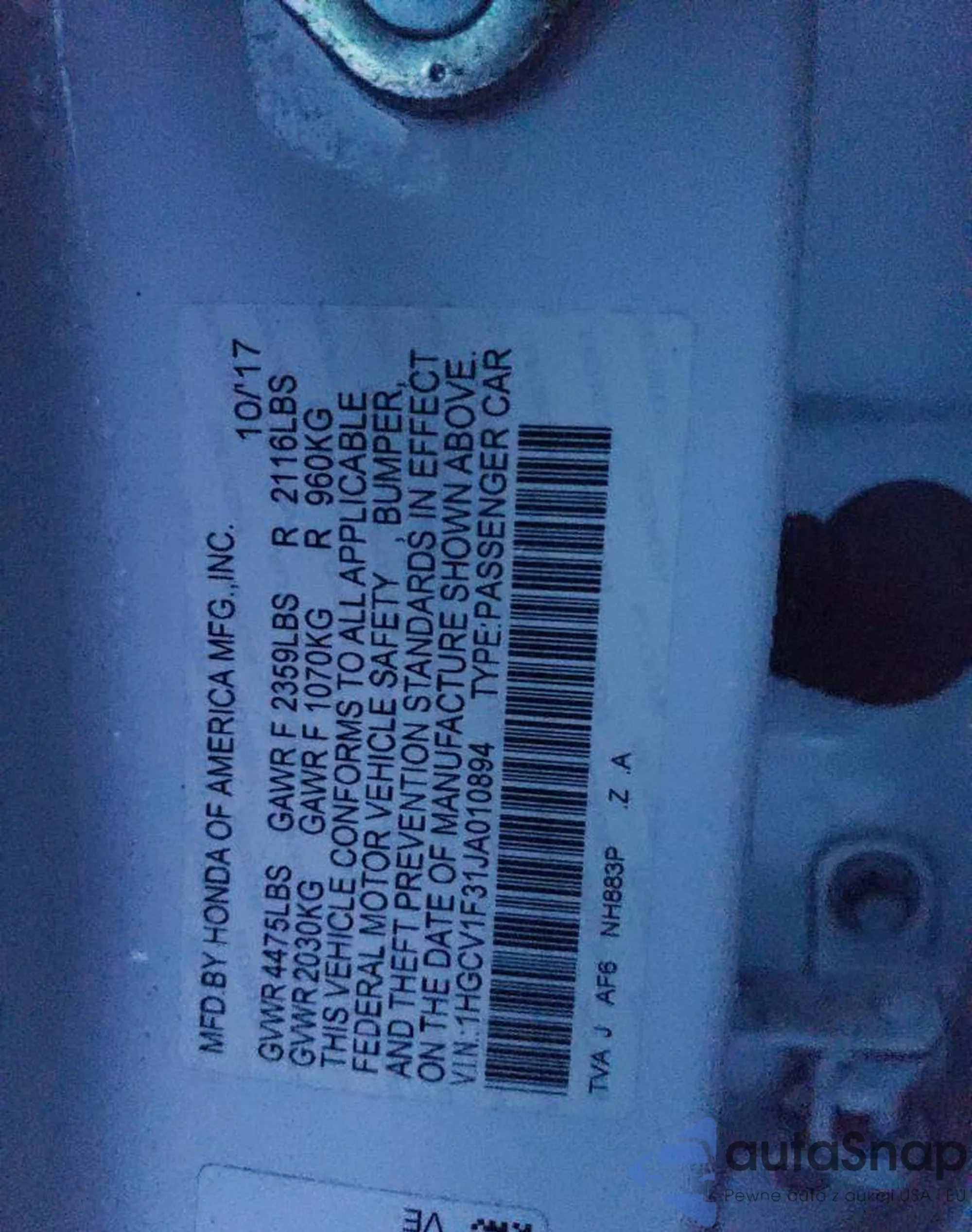 • VIN 1HGCV1F31JA010894