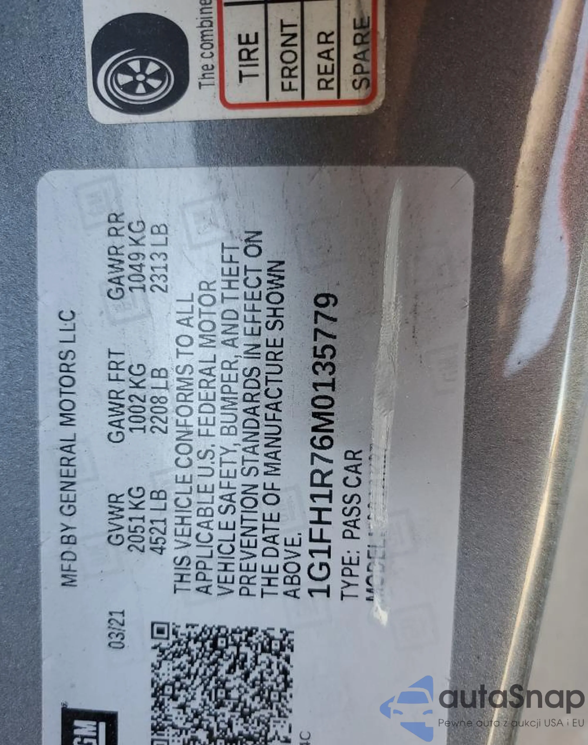 LOT: 47063585 VIN: 1G1FH1R76M0135779