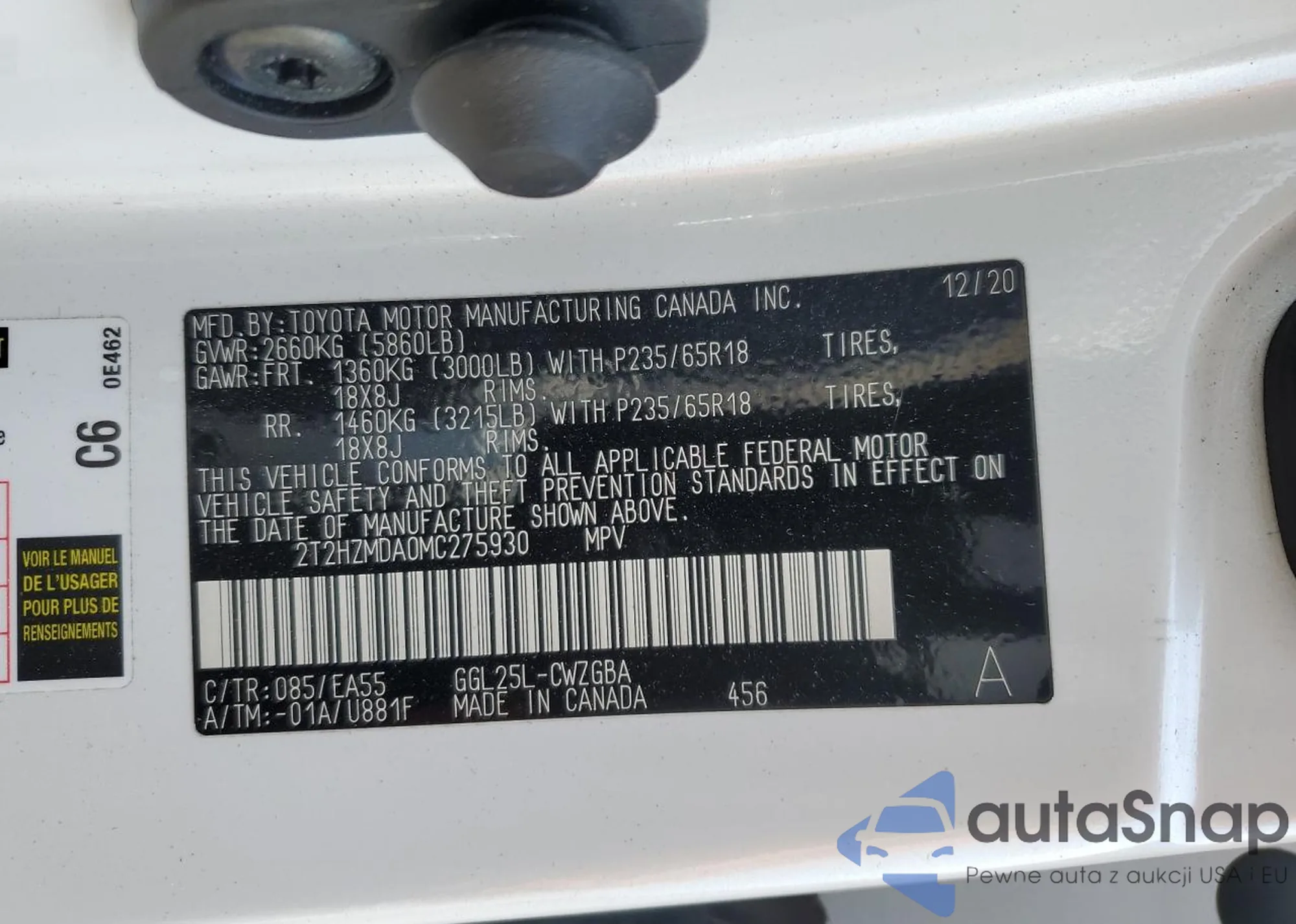 • VIN 2T3F1RFVXRC465412