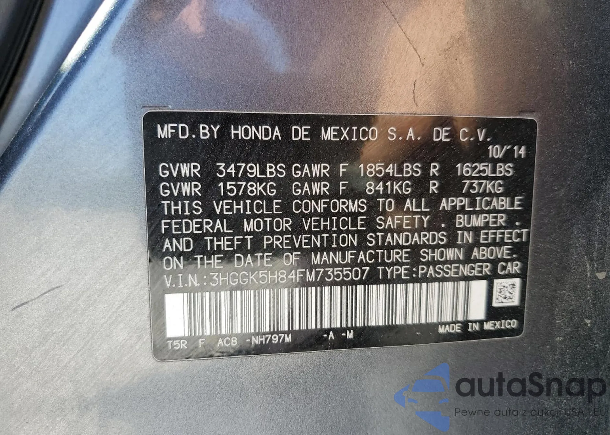 • VIN 3HGGK5H84FM735507