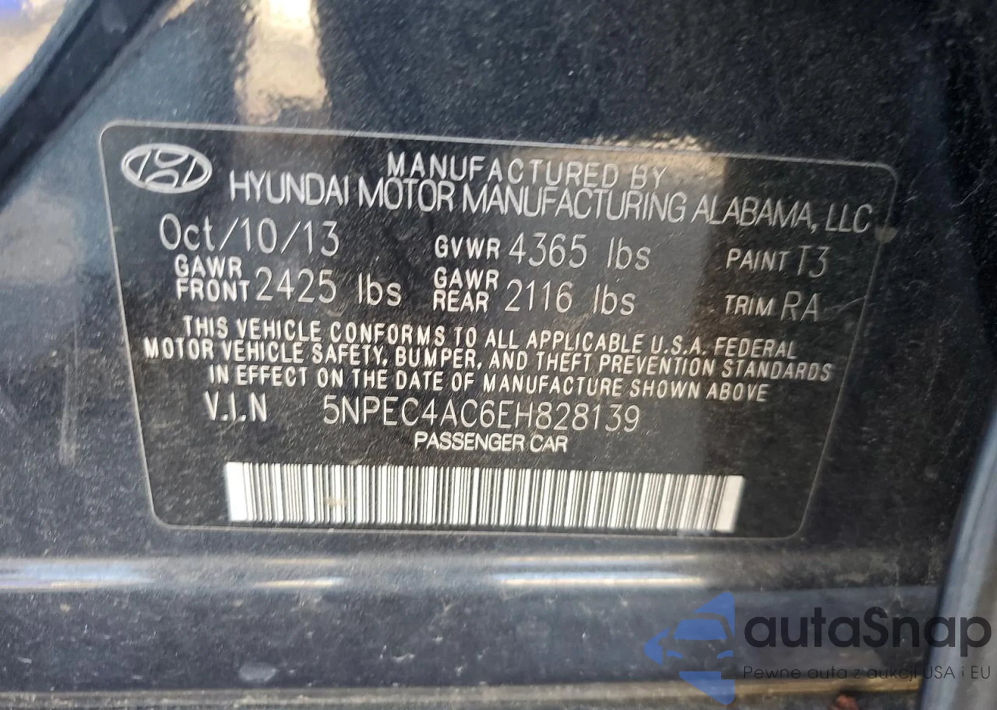 • VIN 5NPEC4AC6EH828139