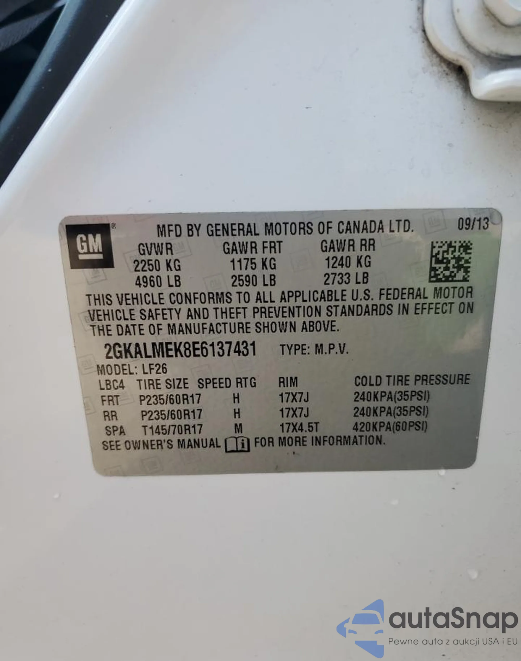 • VIN 2GKALMEK8E6137431