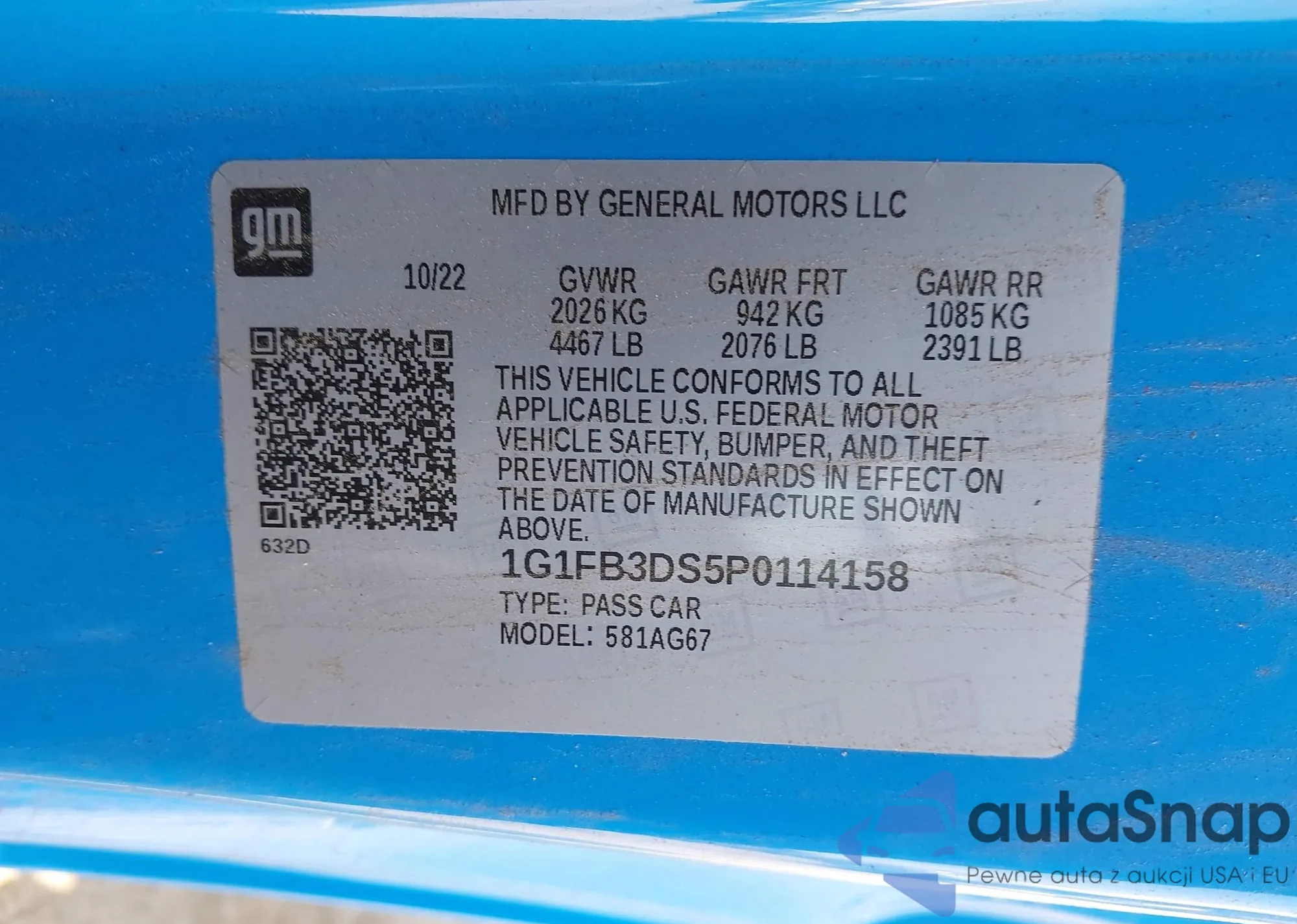 LOT: 41851432 VIN: 1G1FB3DS5P0114158