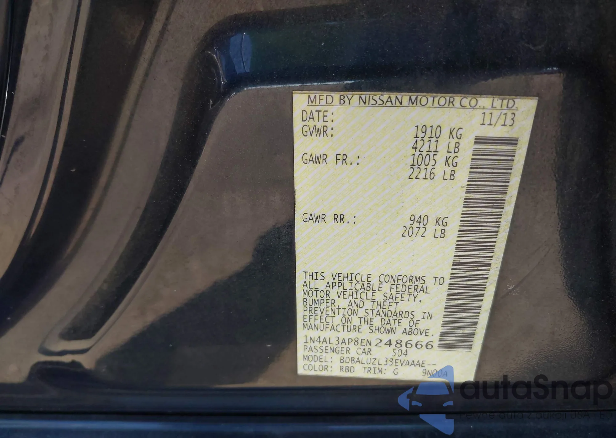 • VIN 1N4AL3AP8EN248666