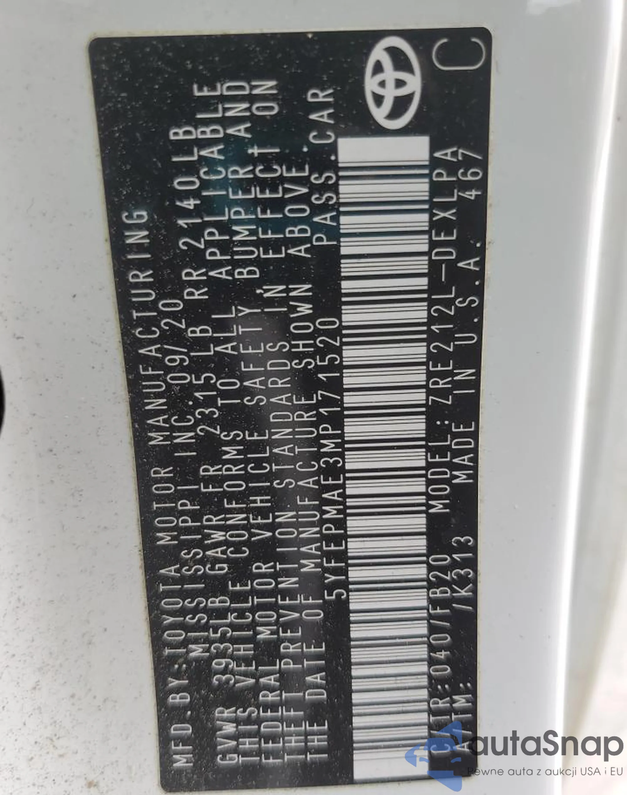 • VIN 5YFEPMAE3MP171520