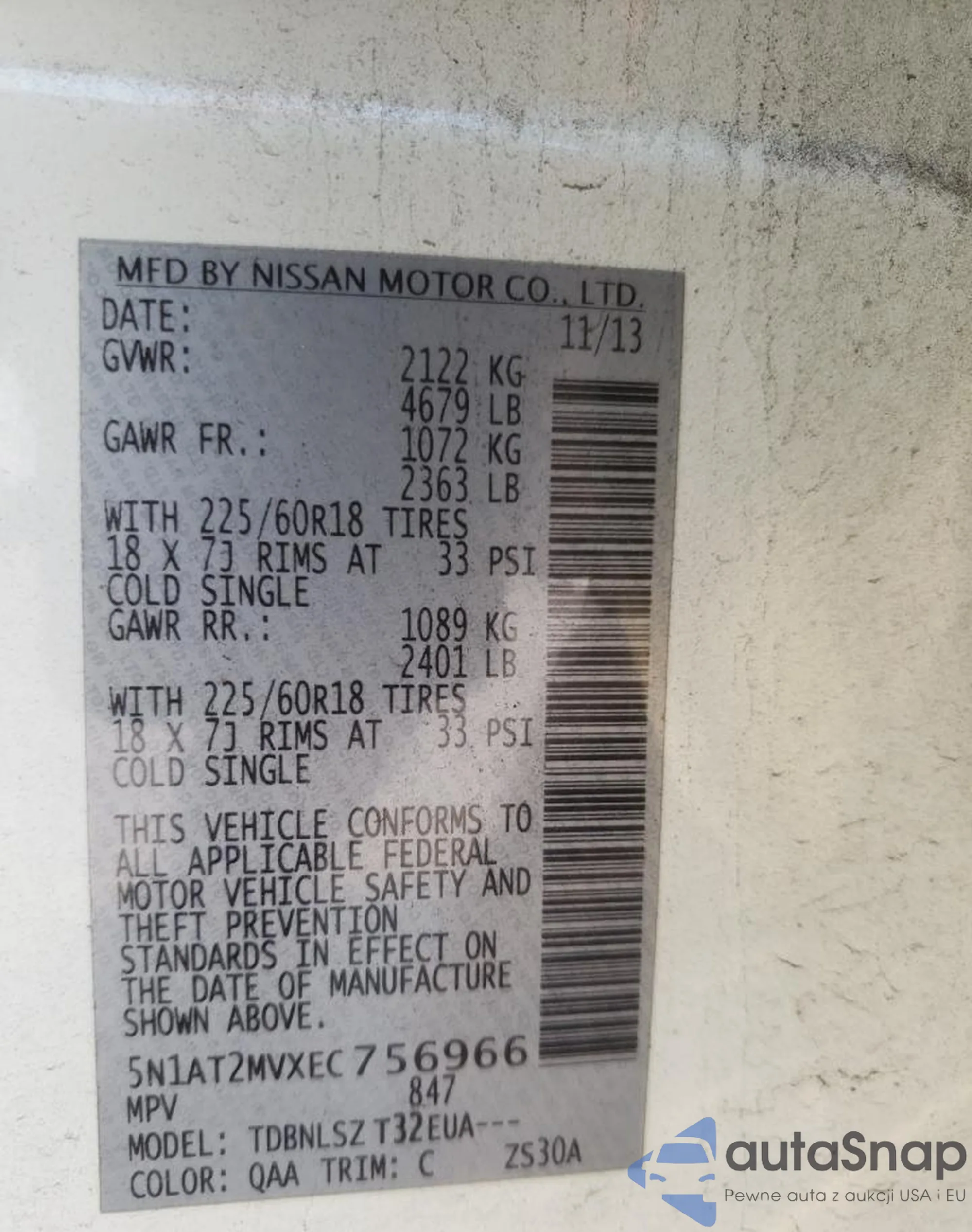 LOT: 49781185 VIN: 5N1AT2MVXEC756966
