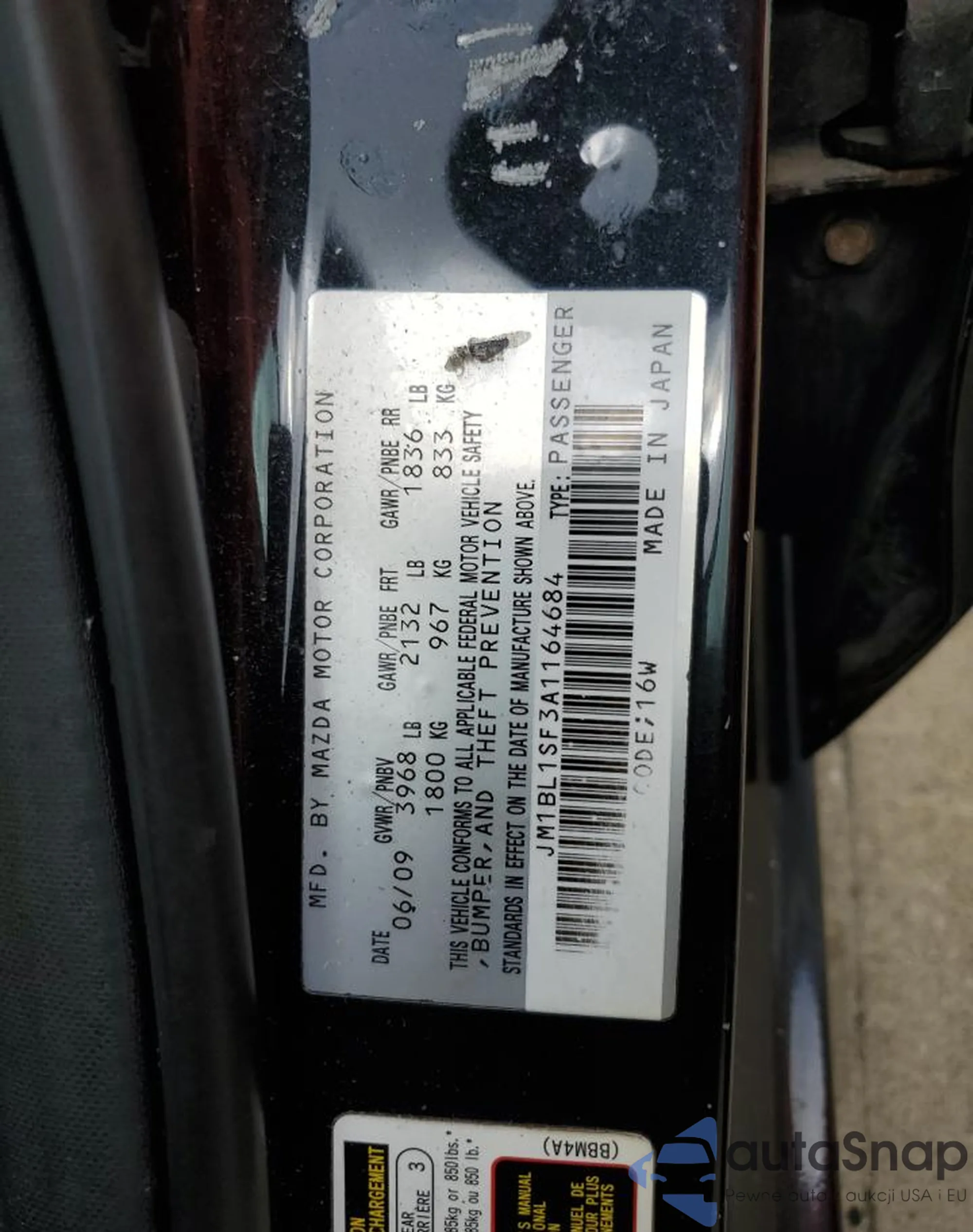 LOT: 51203145 VIN: JM1BL1SF3A1164684