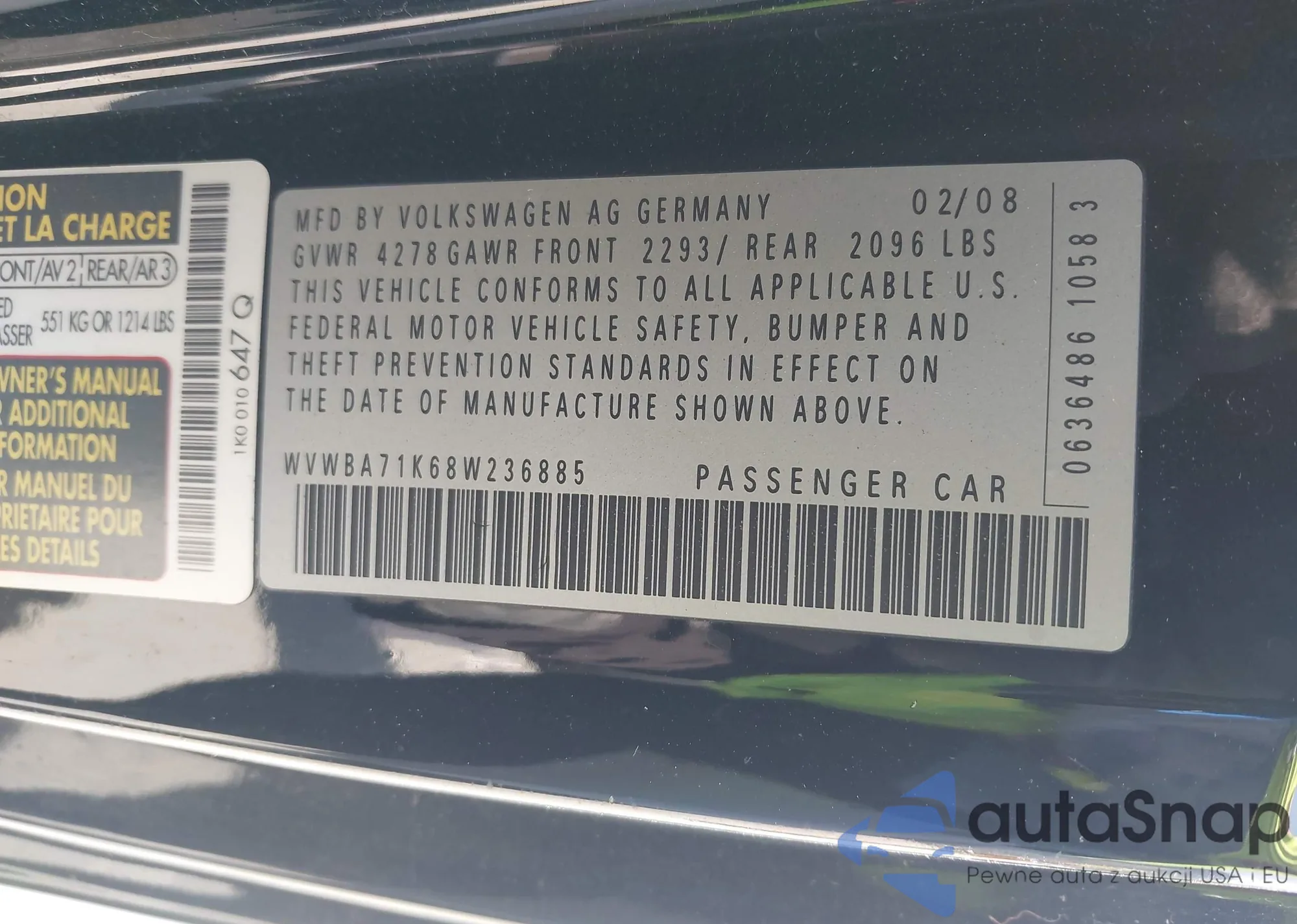 • VIN WVWBA71K68W236885