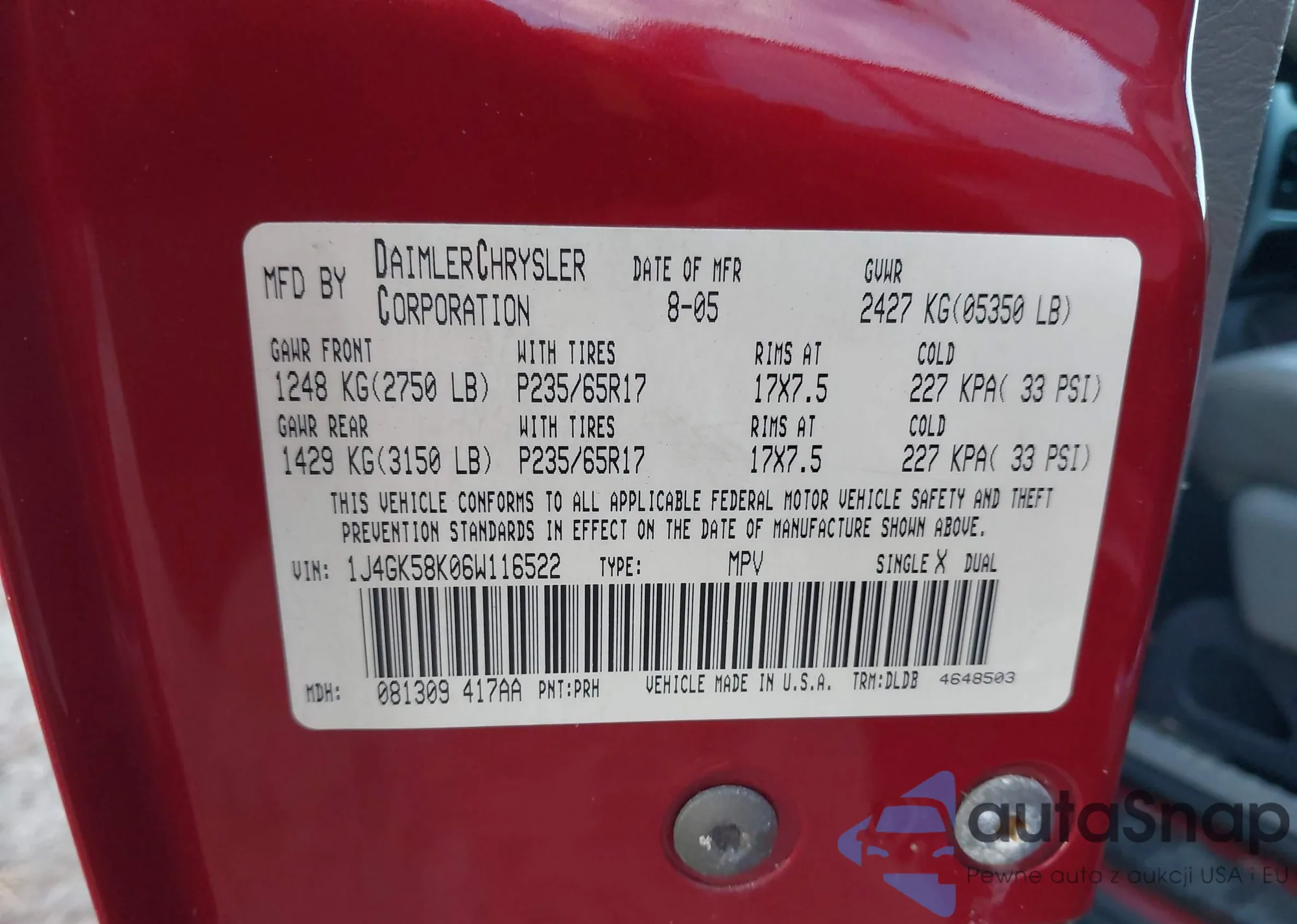 LOT: 42337383 VIN: 5FNRL38635B416982