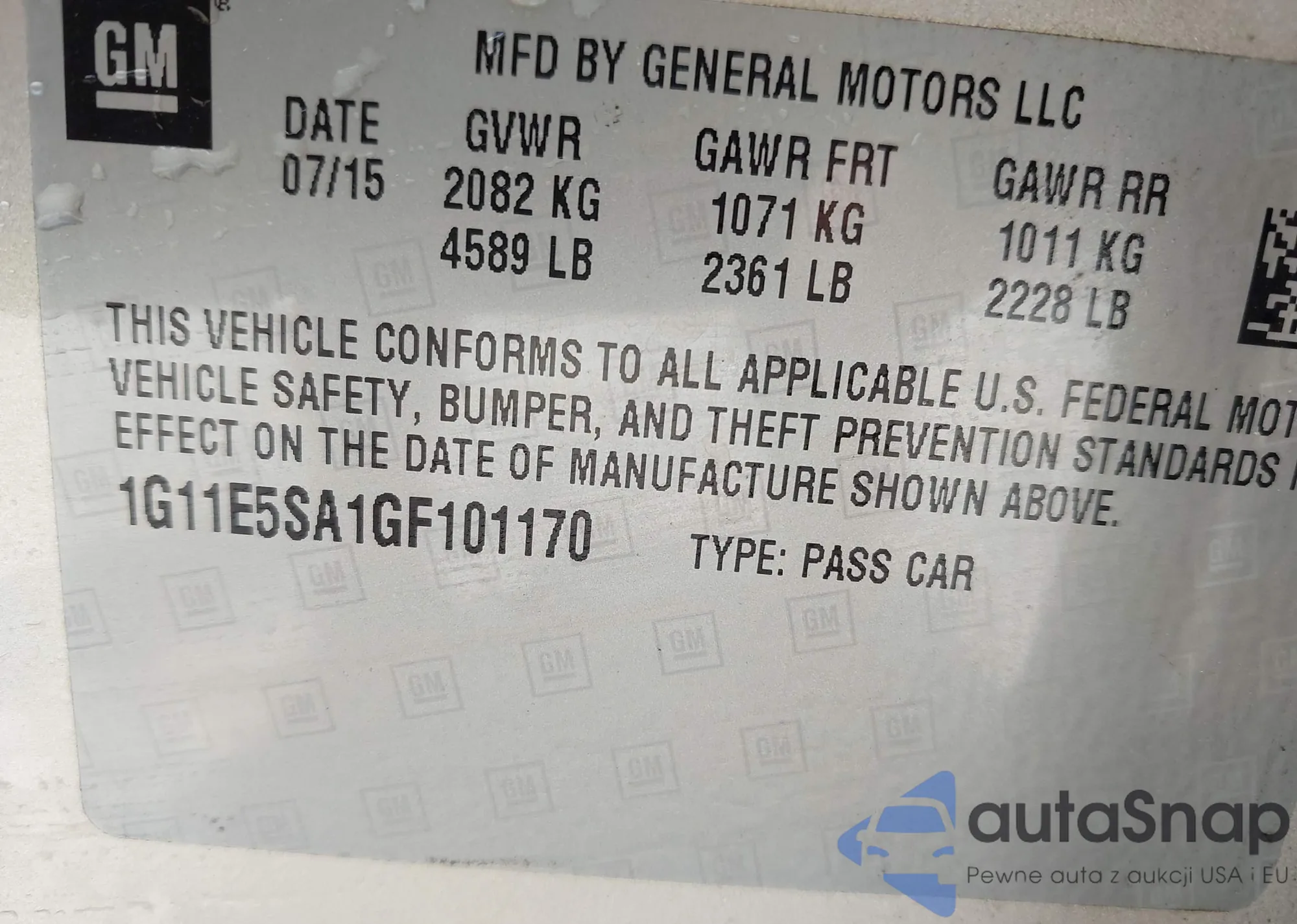 • VIN 2G1WG5EKXB1119767