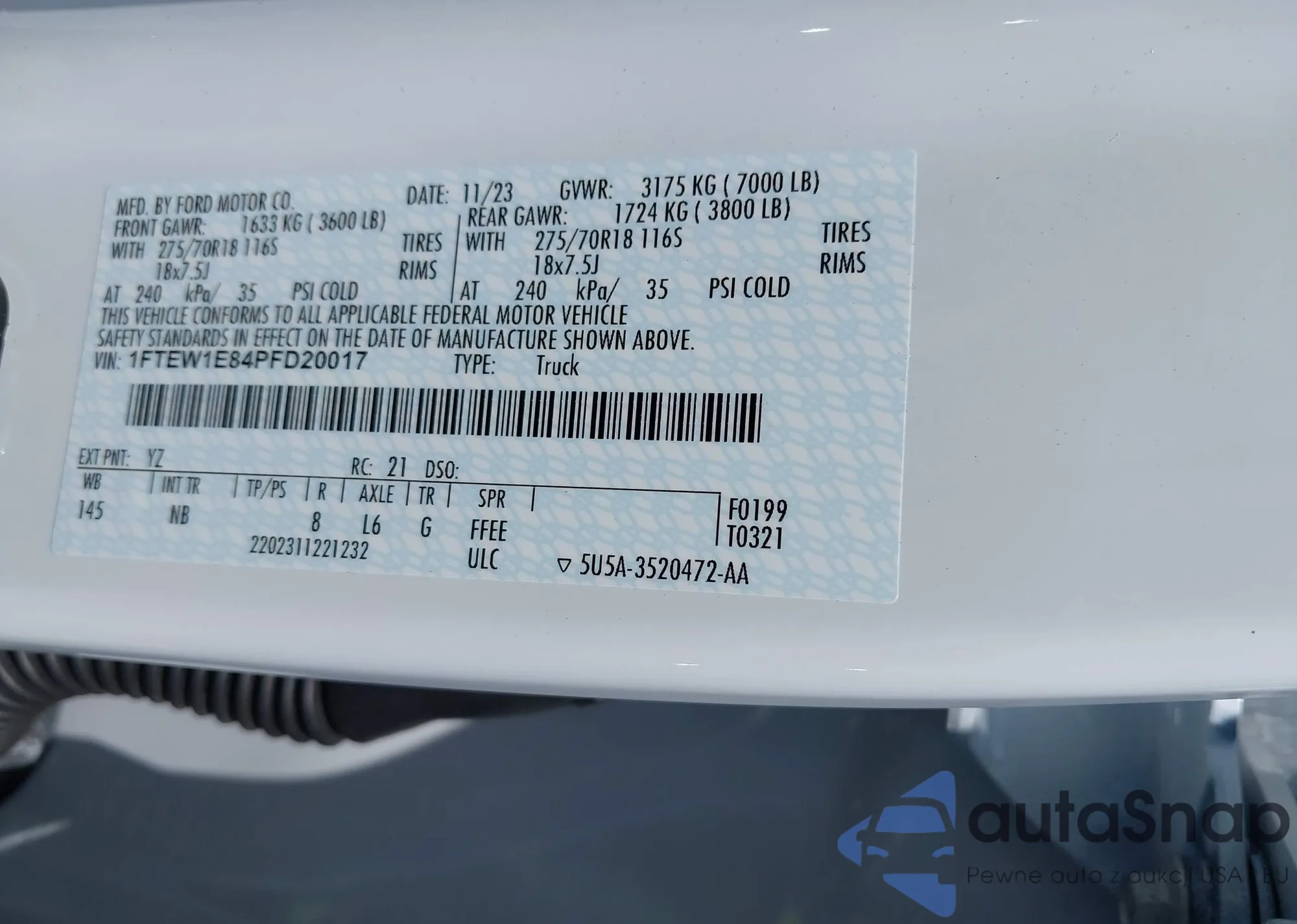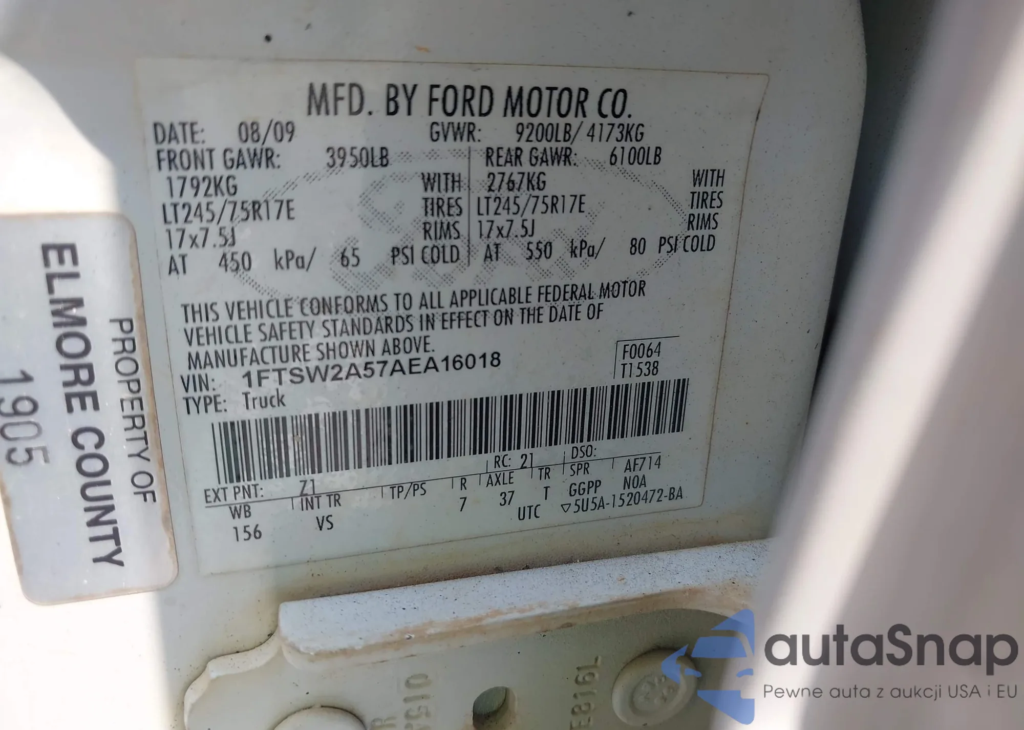 • VIN 1FTSW2A57AEA16018