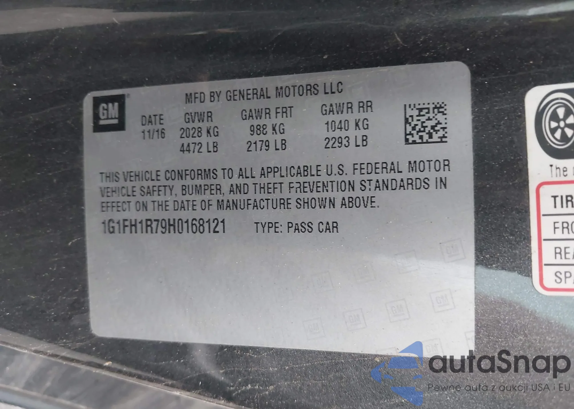 LOT: 42289802 VIN: 1G1FH1R79H0168121