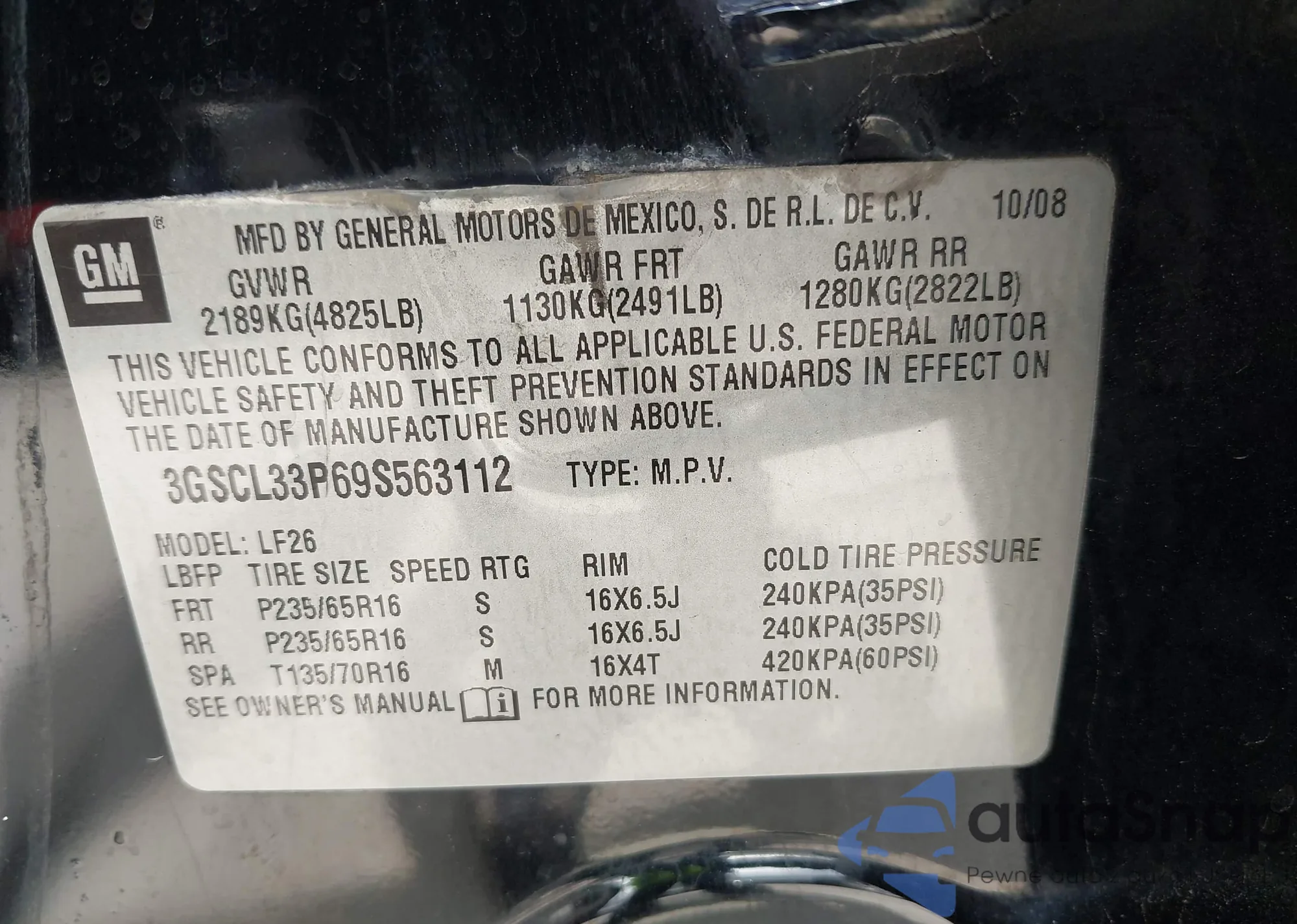 • VIN 3GNBABFW3BS607221