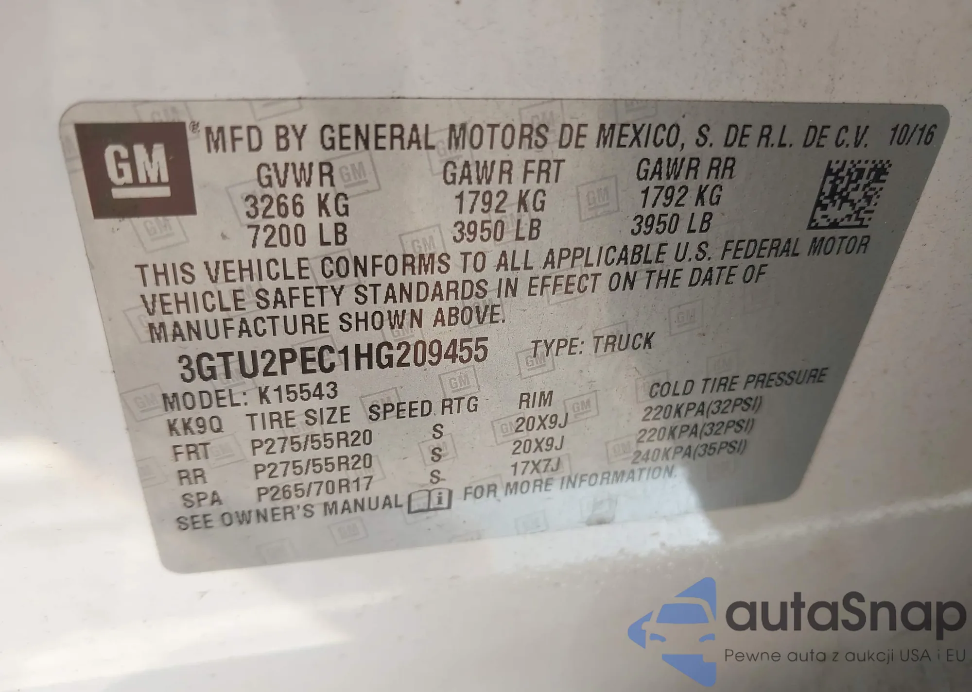 • VIN 3GTU2PEC1HG209455