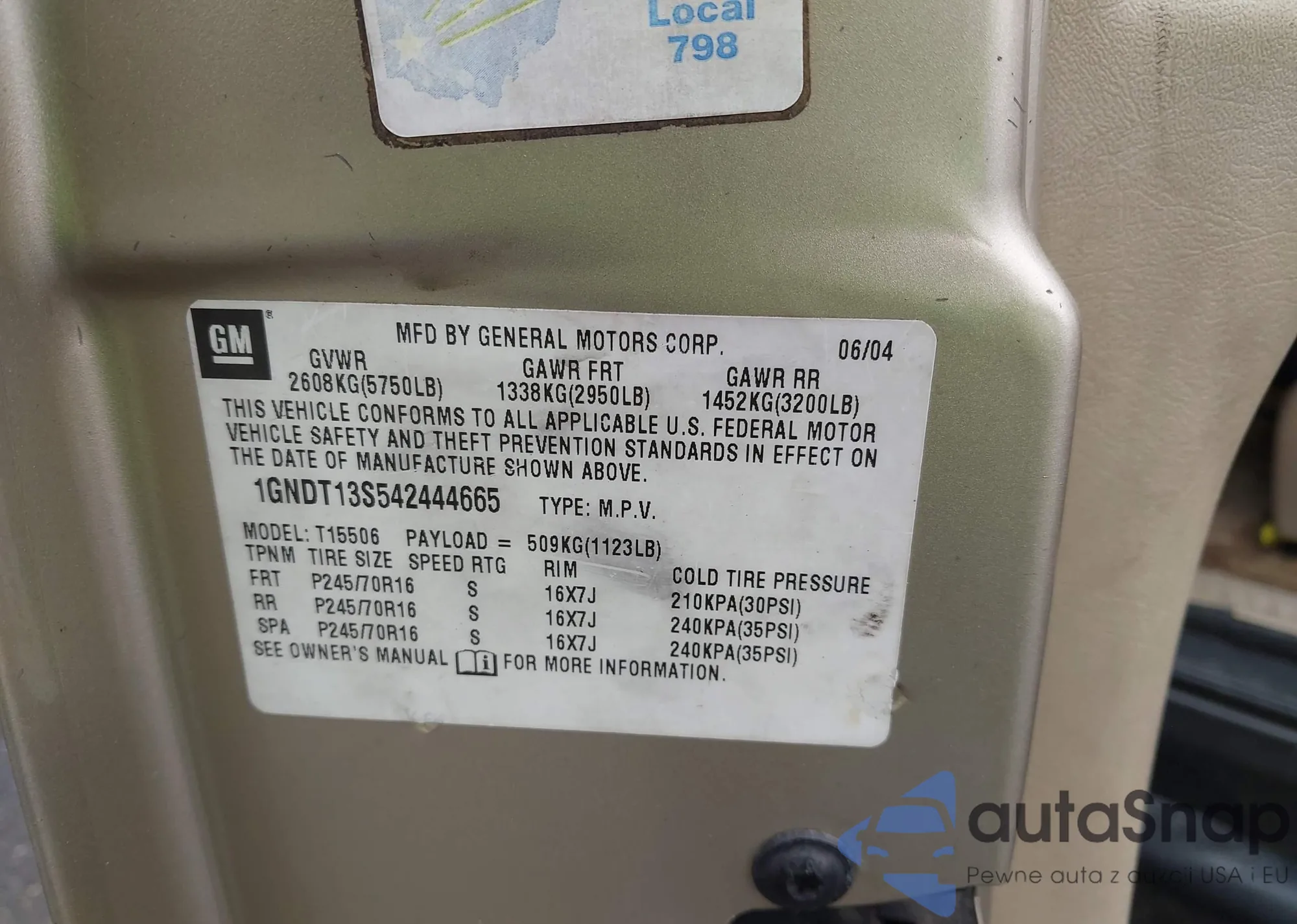 LOT: 42398284 VIN: 1GNDT13S542444665