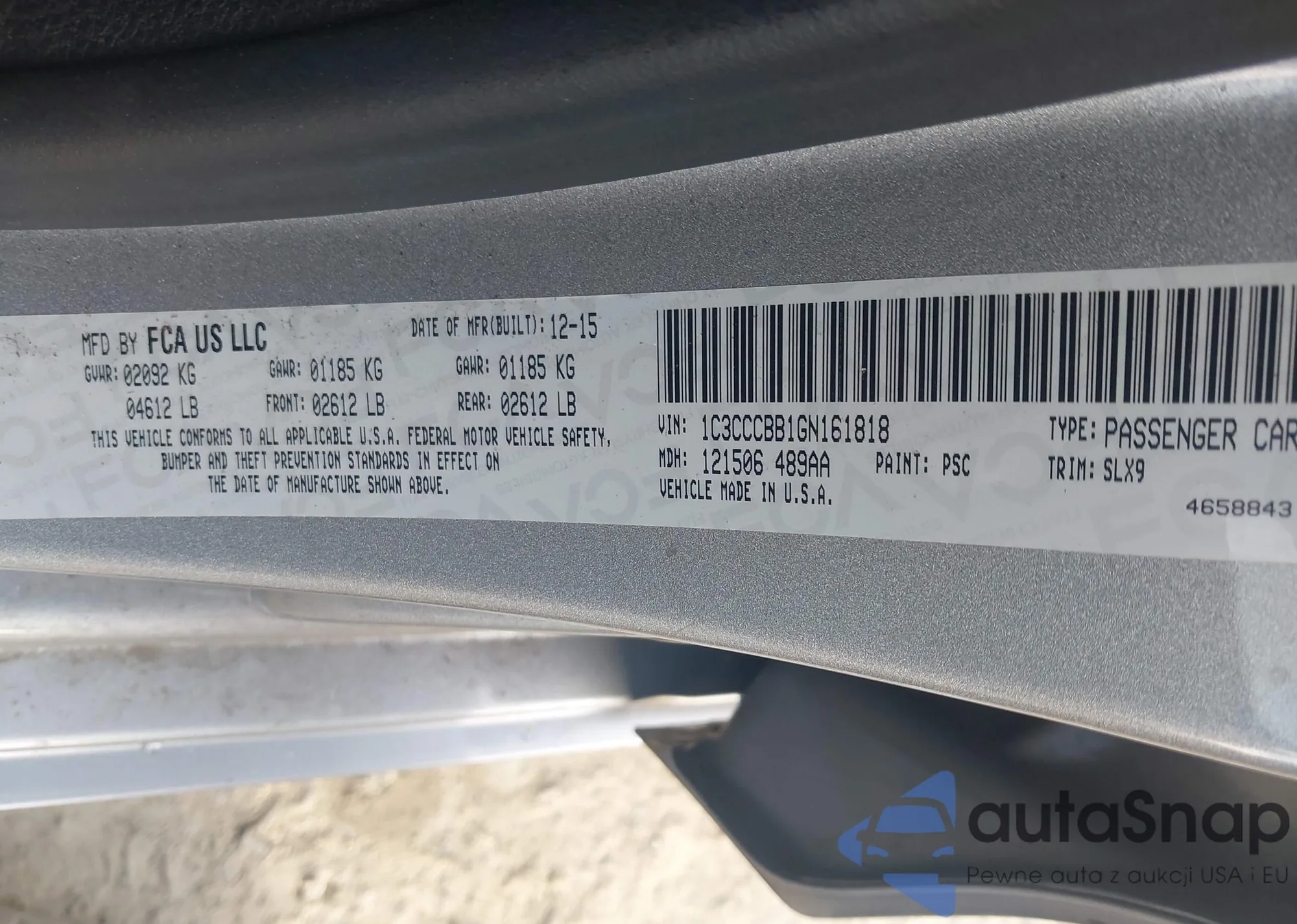 LOT: 41790359 VIN: 1C3CCCBB1GN161818