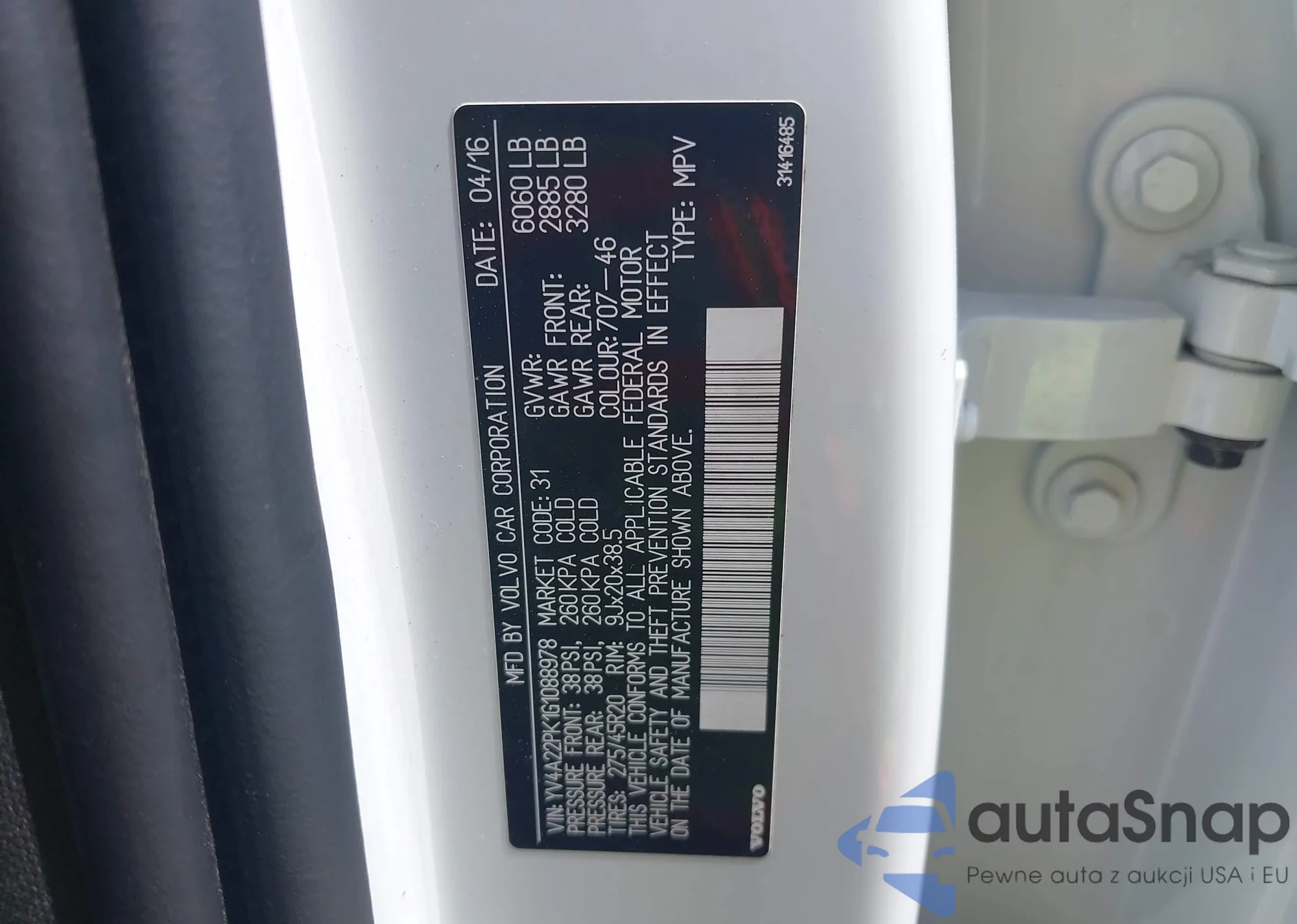 LOT: 42131256 VIN: YV4A22PK1G1088978