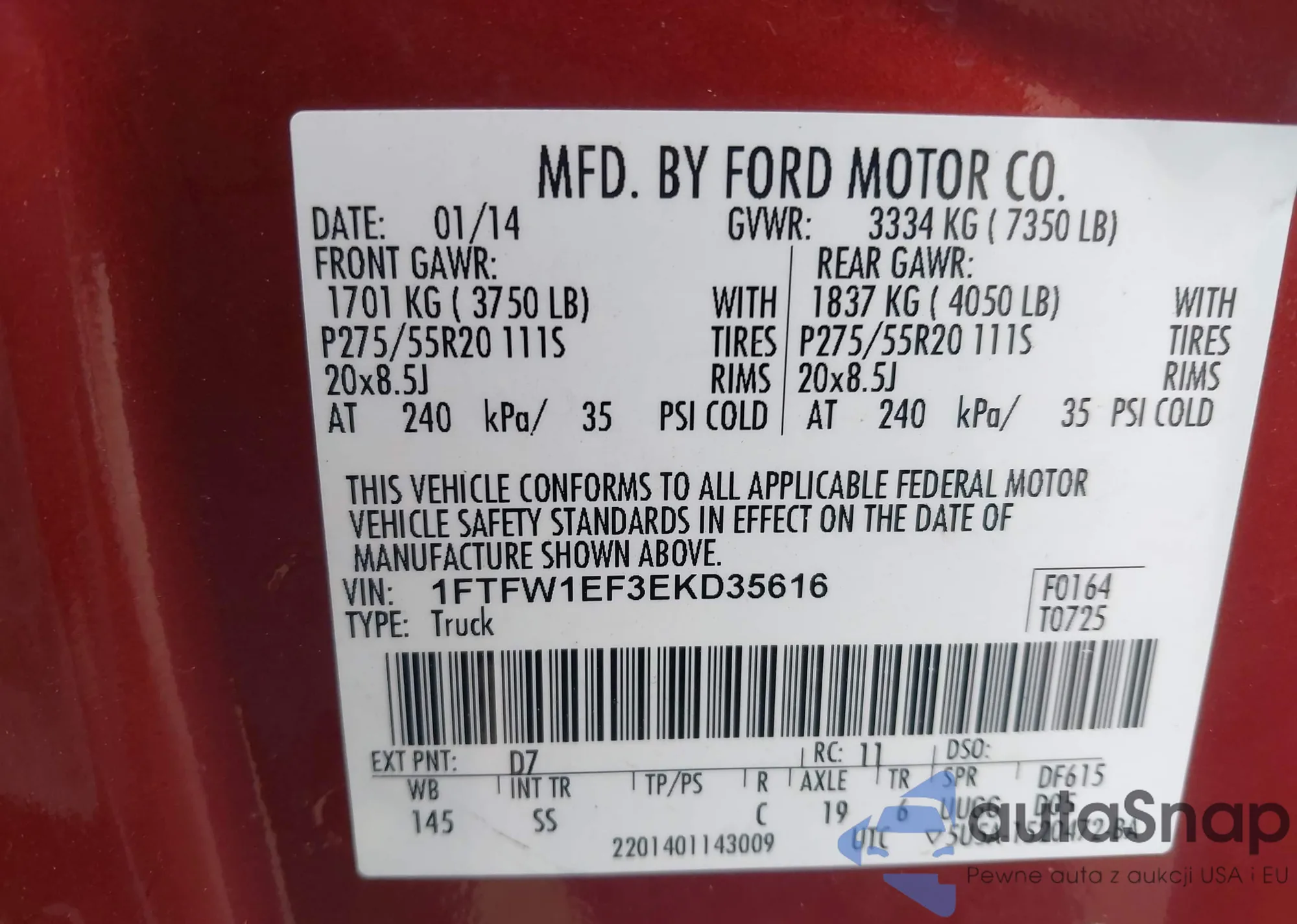 • VIN 1FTFW1EF3EKD35616